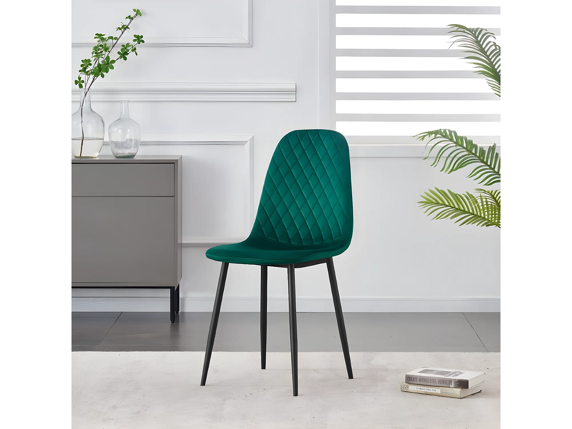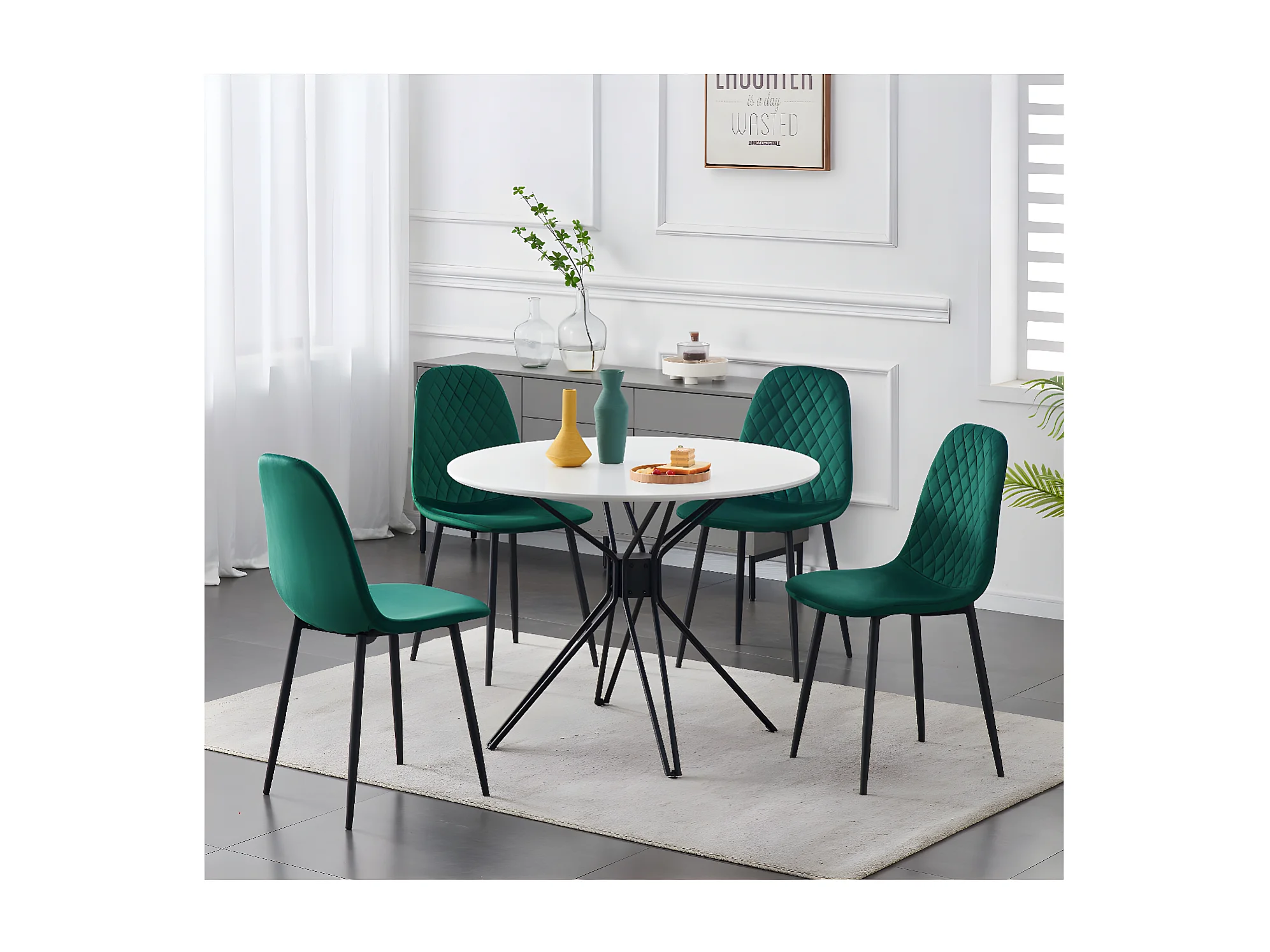 Stuhl 4er-Set - Stoff & schwarzes Metall - Grün - BACARD
