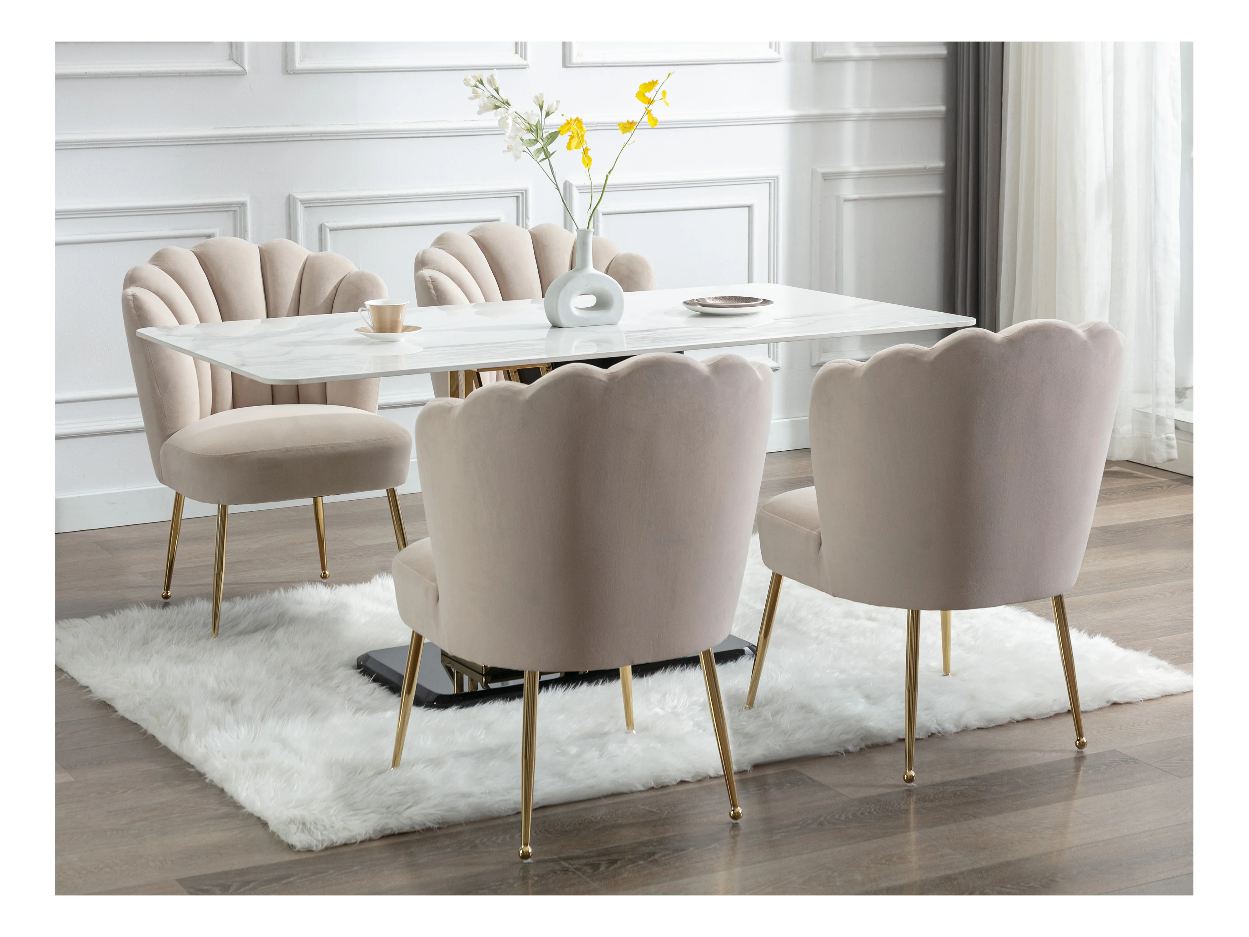 Stuhl 6er-Set - Samt & goldfarbener Stahl - Beige - RUTY von Pascal MORABITO