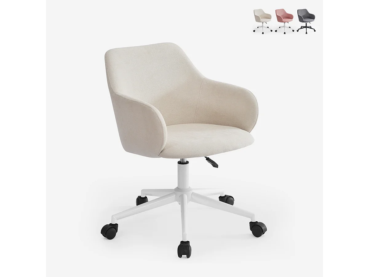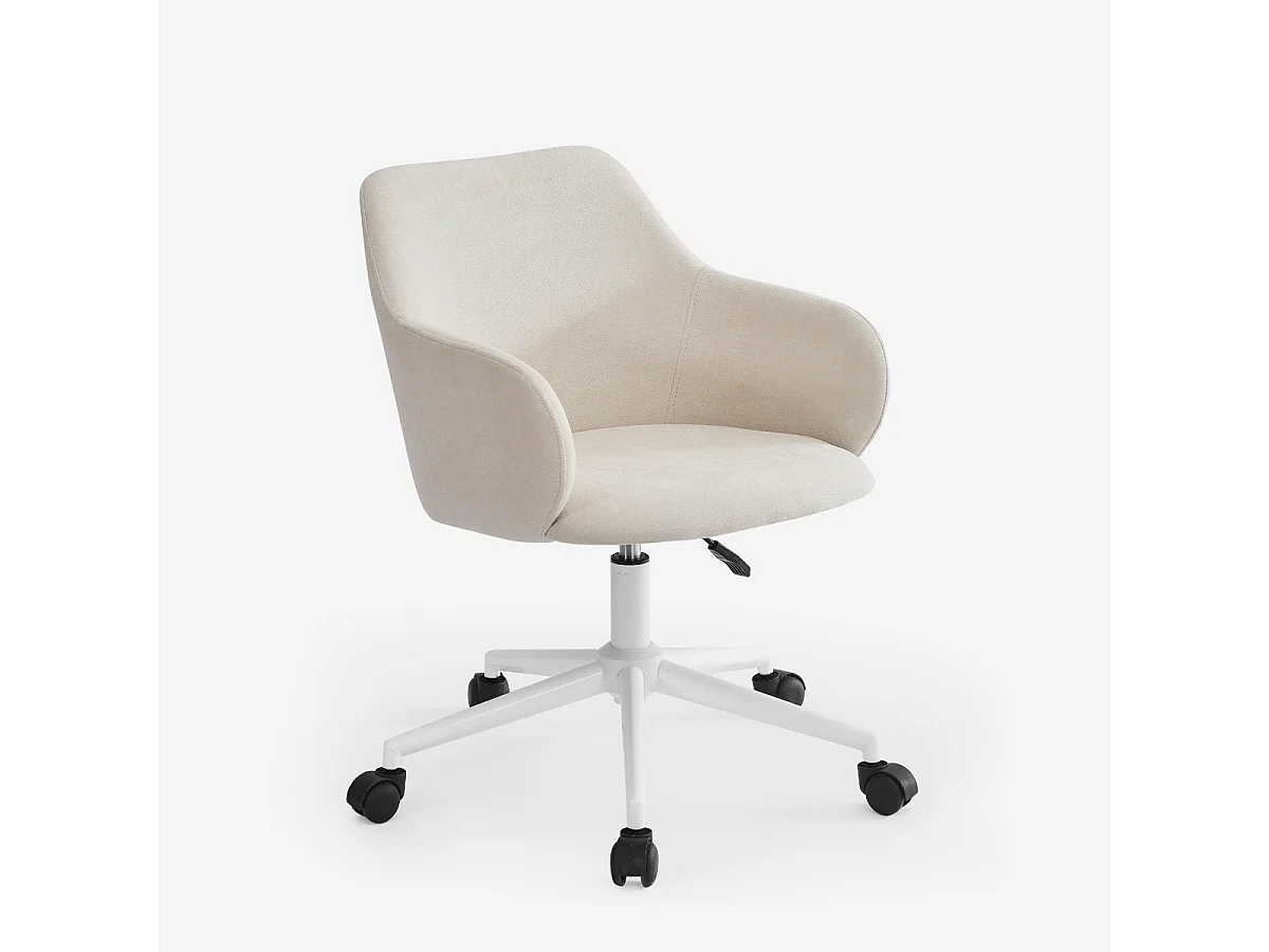 Stuhl drehbar aus Stoff mit Armlehnen Büro Homeoffice Kivri - Weiß