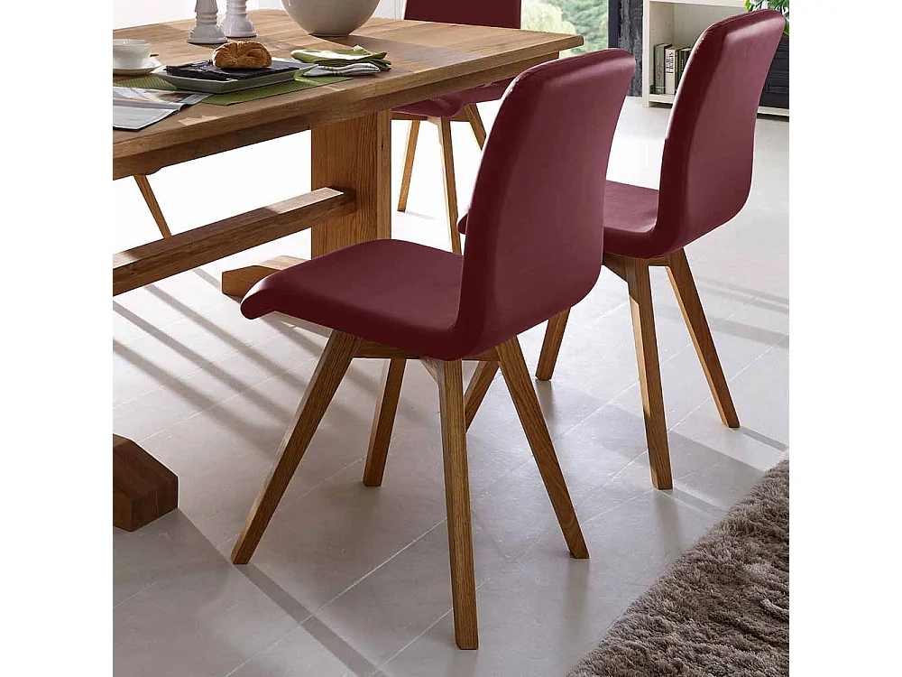 Stuhl in Dunkelrot Kunstleder Wildeiche Massivholz