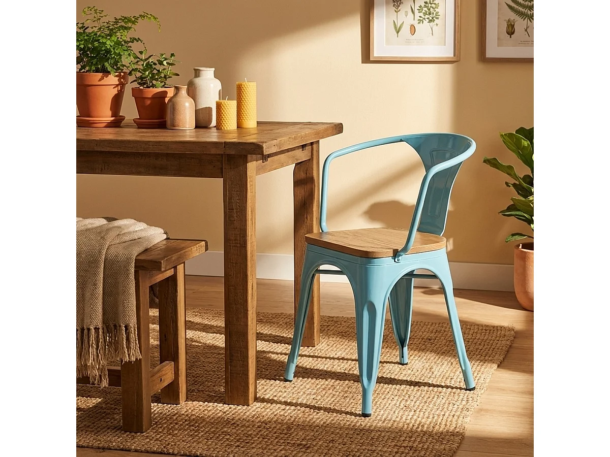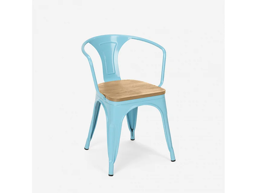 Stuhl industrie-design bar küche Steel Wood Arm Light - Hellblau