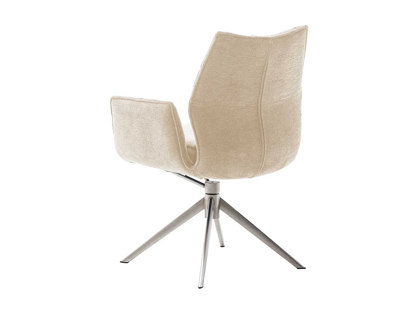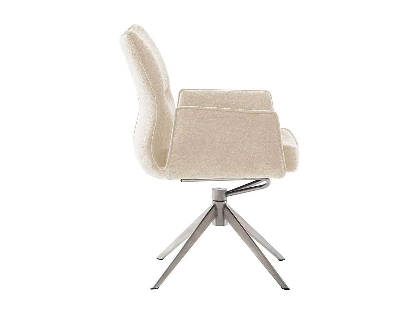 Stuhl Küche Armlehnstuhl in Cremeweiß mit Gestell aus Metall (2er Set)