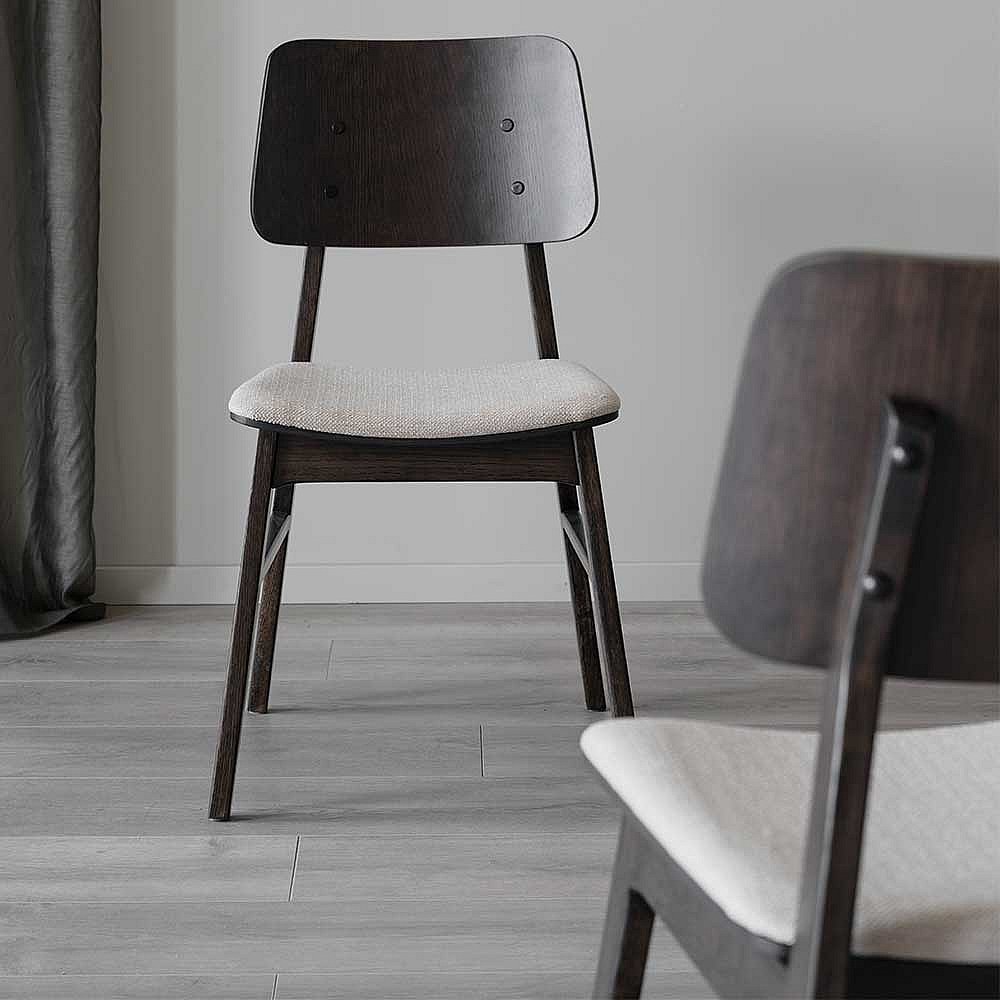 Stuhl Küche in Eiche dunkel & Beige Massivholz (2er Set)