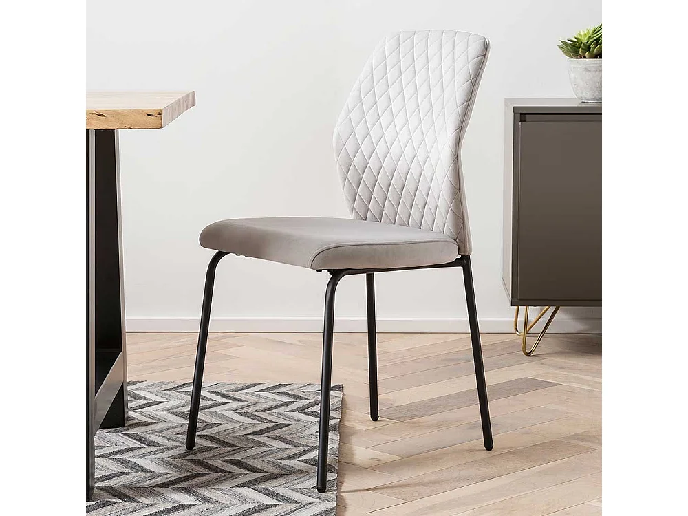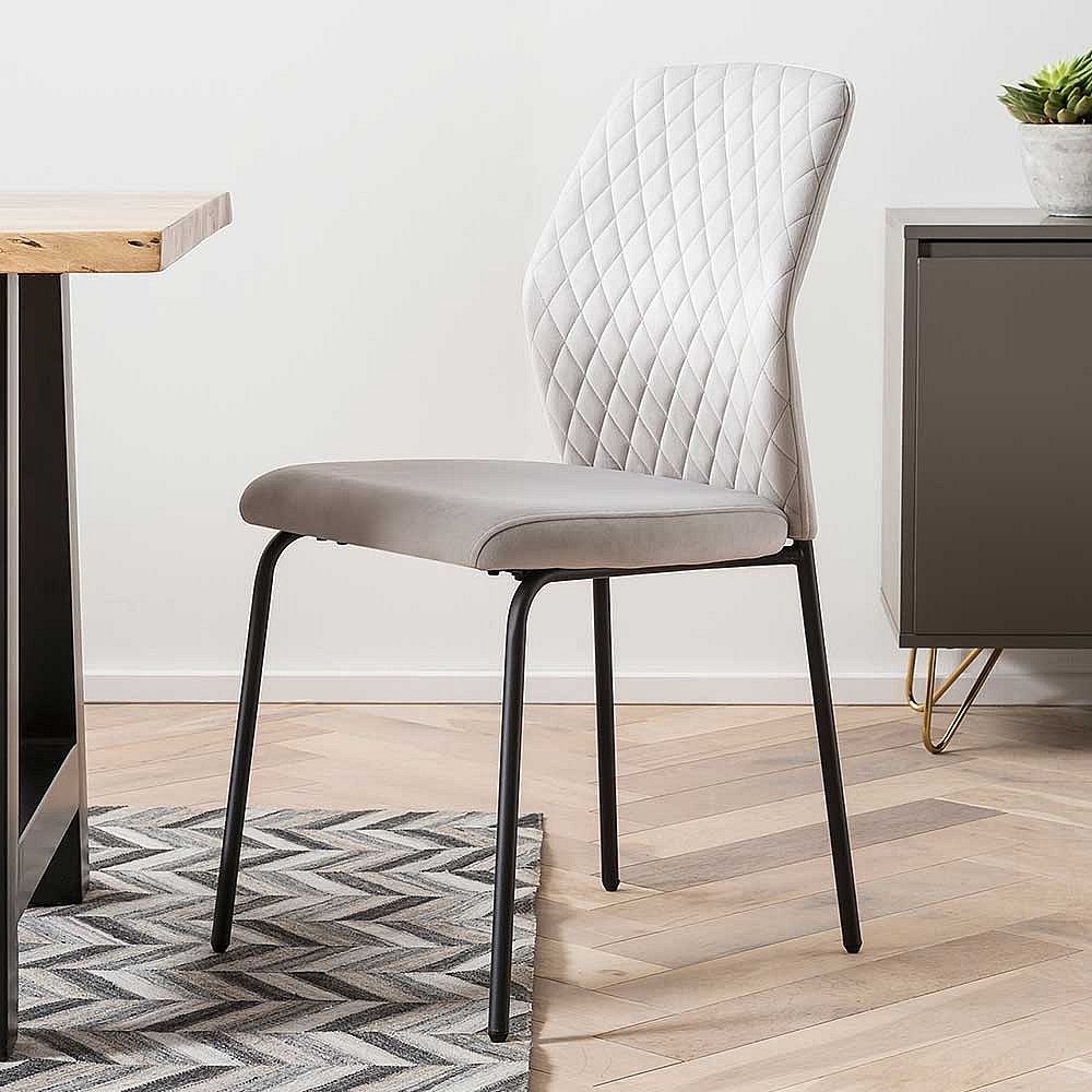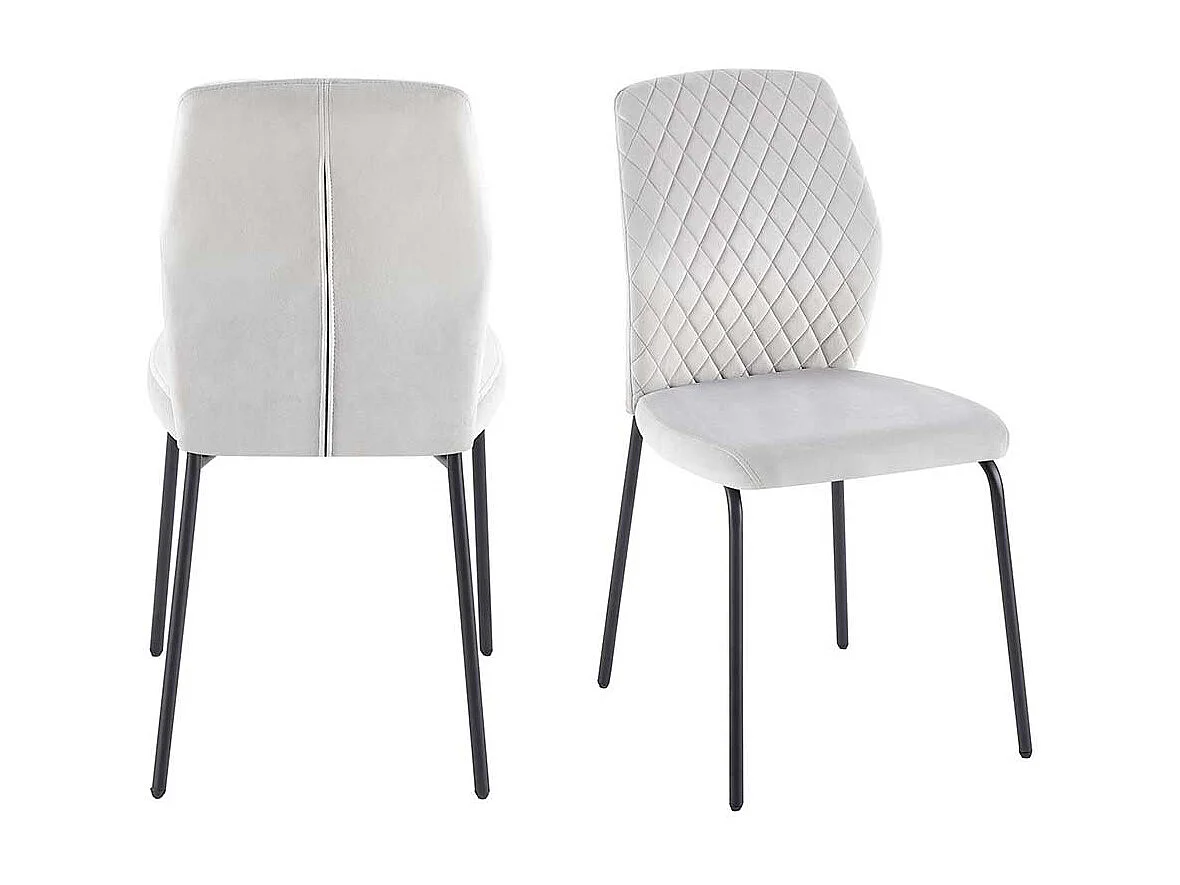 Stuhl Küche Samt Metall in Hellgrau und Schwarz 50 cm Sitzhöhe (2er Set)