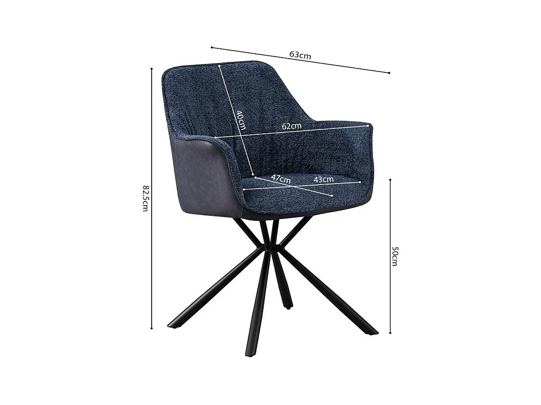 Stuhl 'LUCIA' Bouclé Blau Rücken PU Blau, Maße H82,5 x L62 x T63, ideal für Ihre Küche oder Ihr Esszimmer