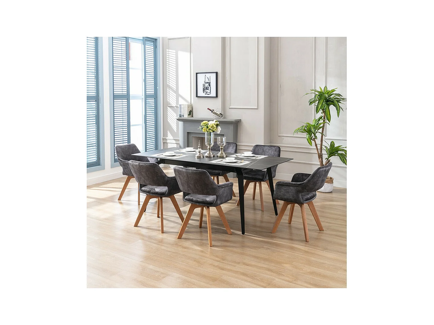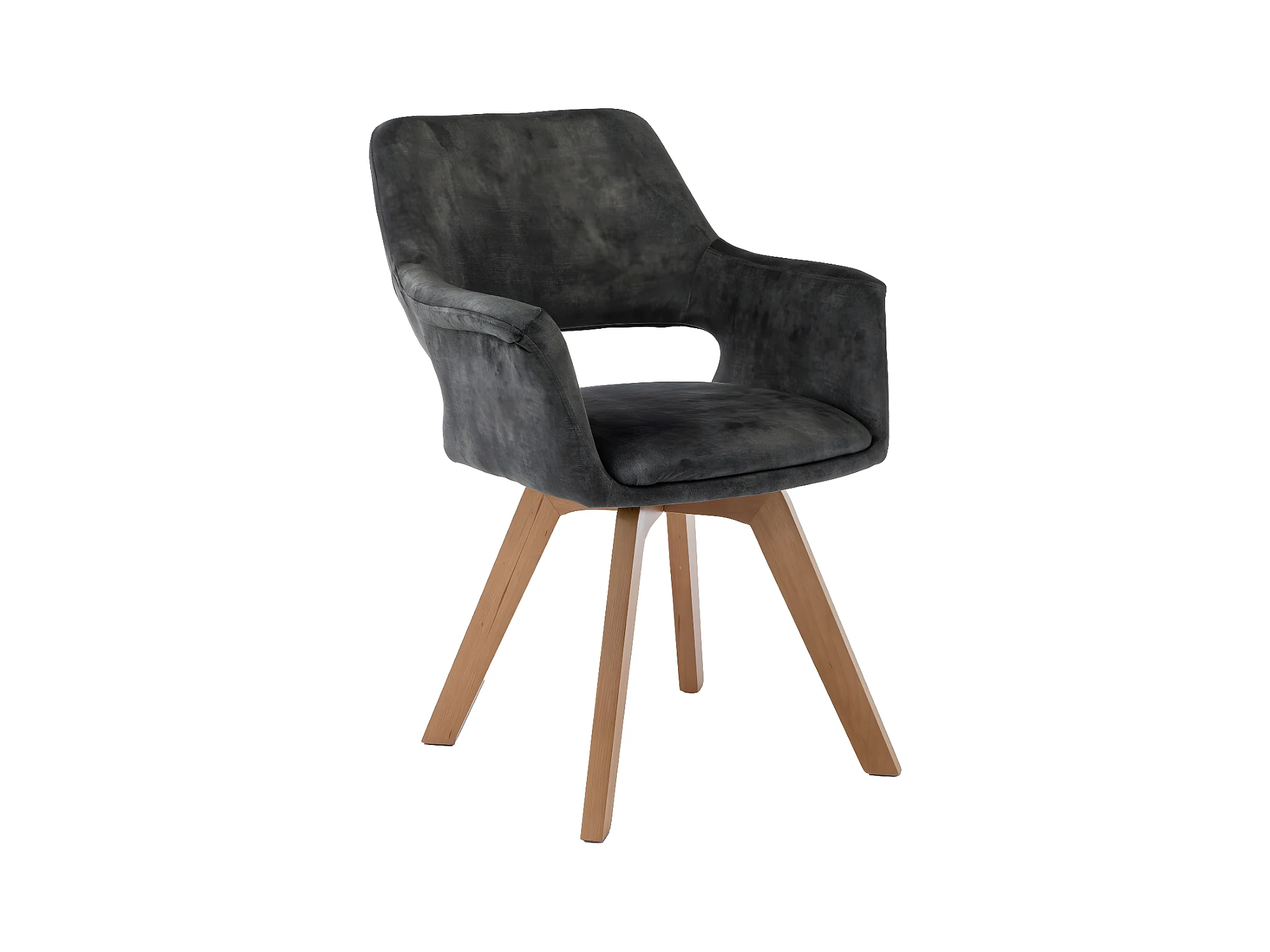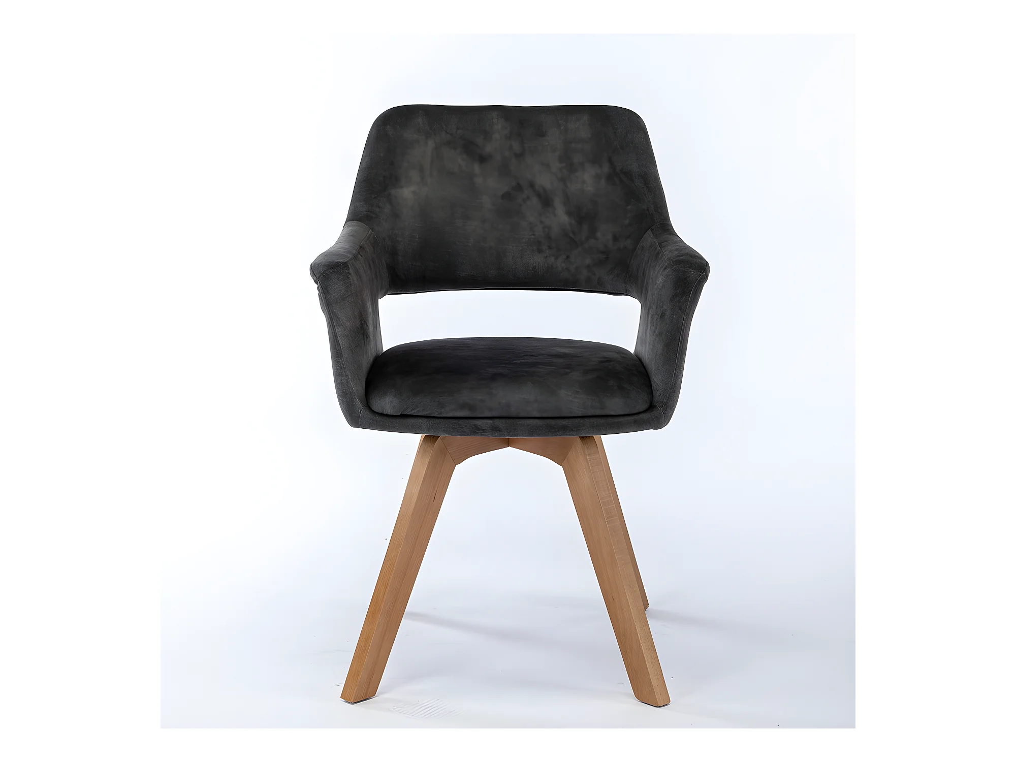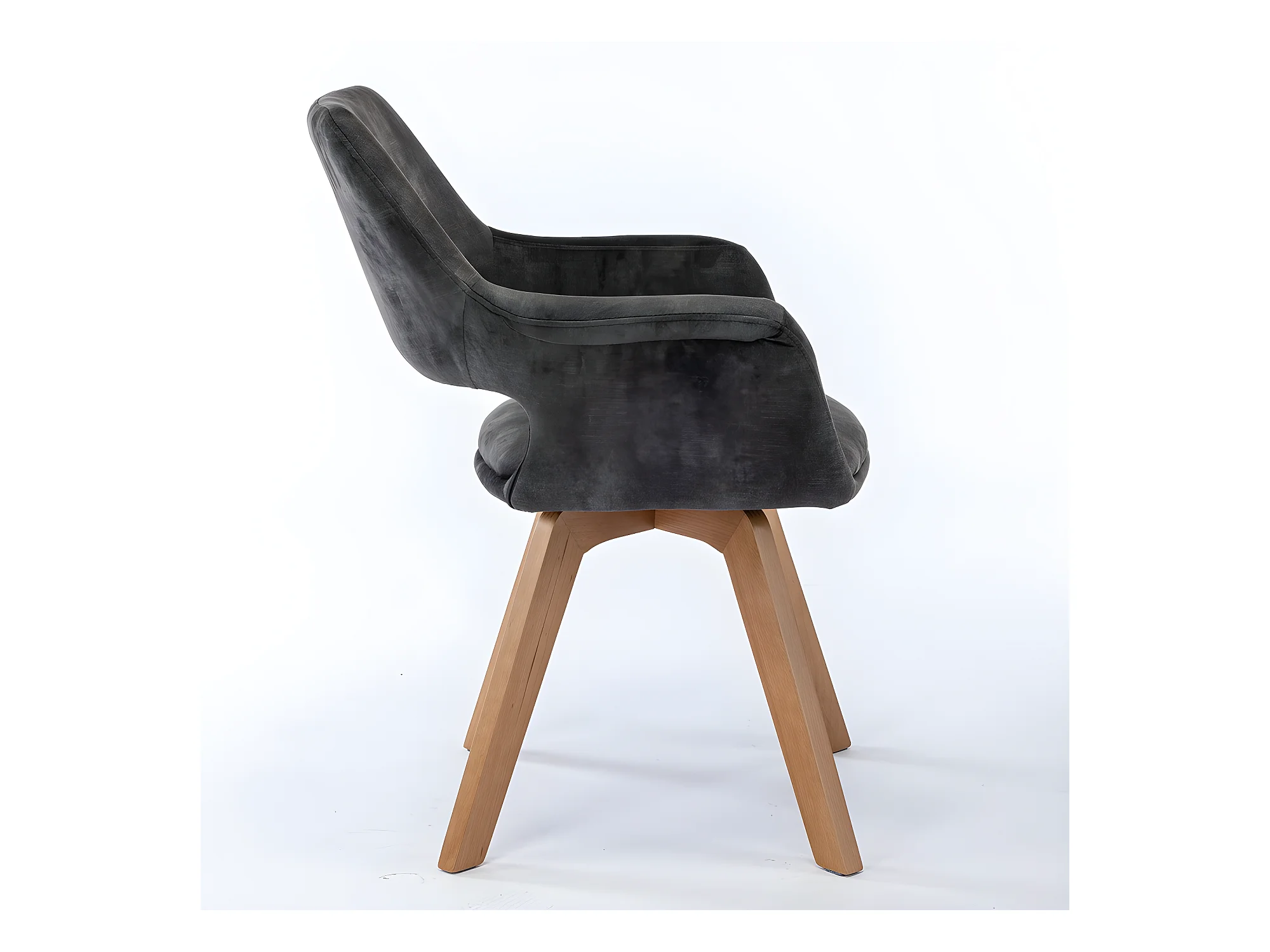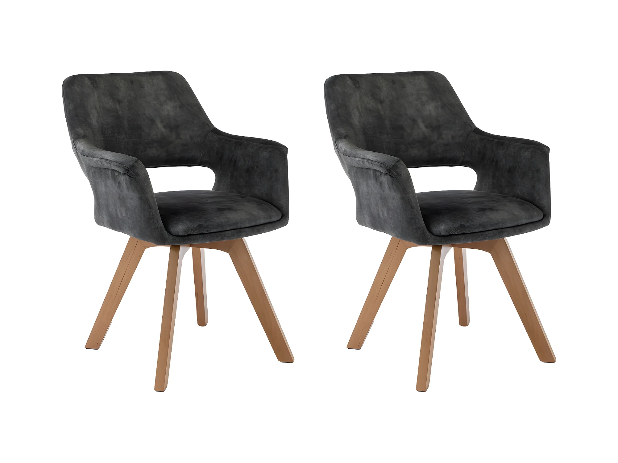 Stuhl mit armlehnen 2er-Set - Stoff & Massivholz - Dunkelgrün - MILA