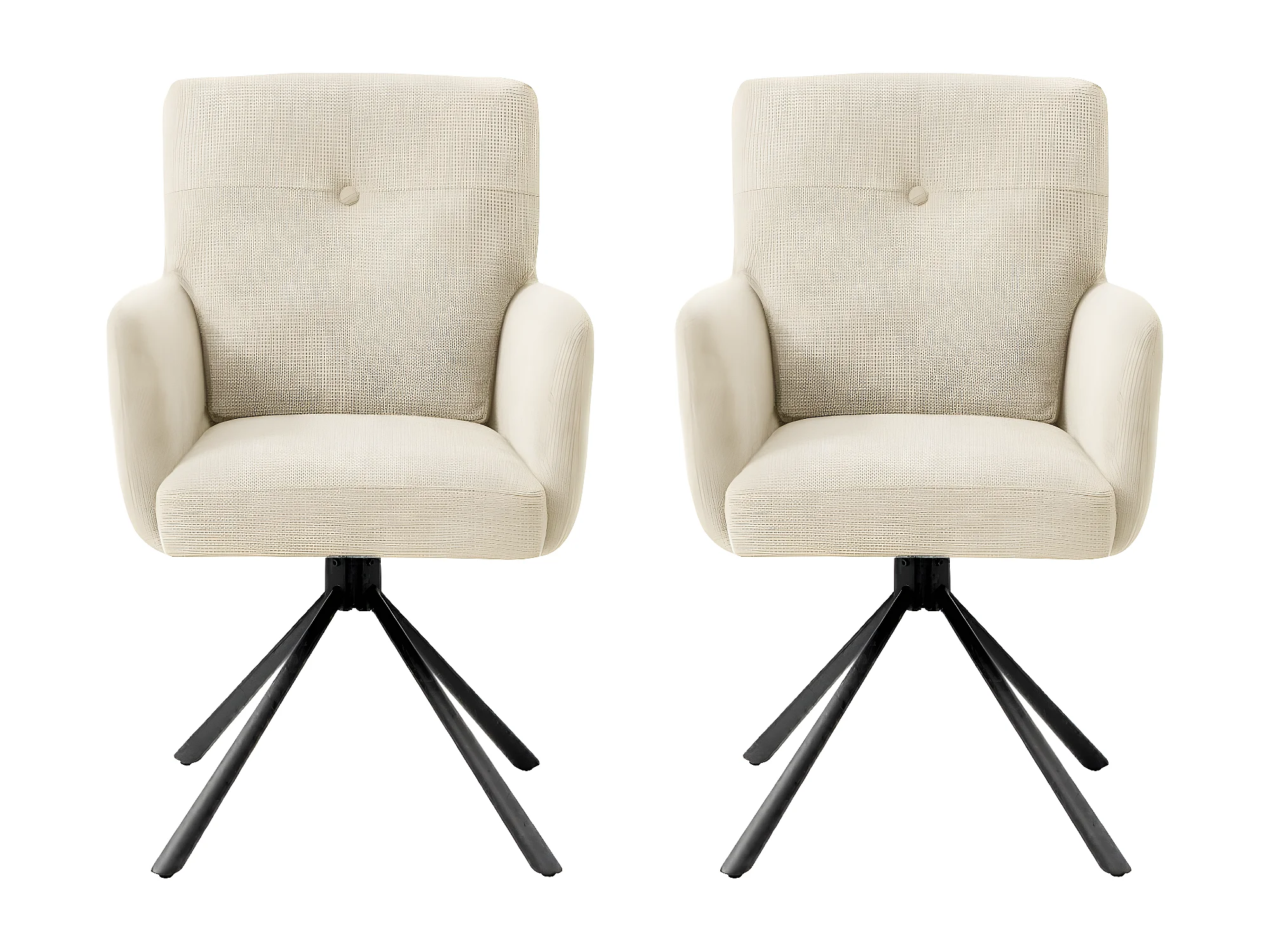 Stuhl mit armlehnen 2er-Set - Stoff & schwarzes Metall - Beige - KALTEN