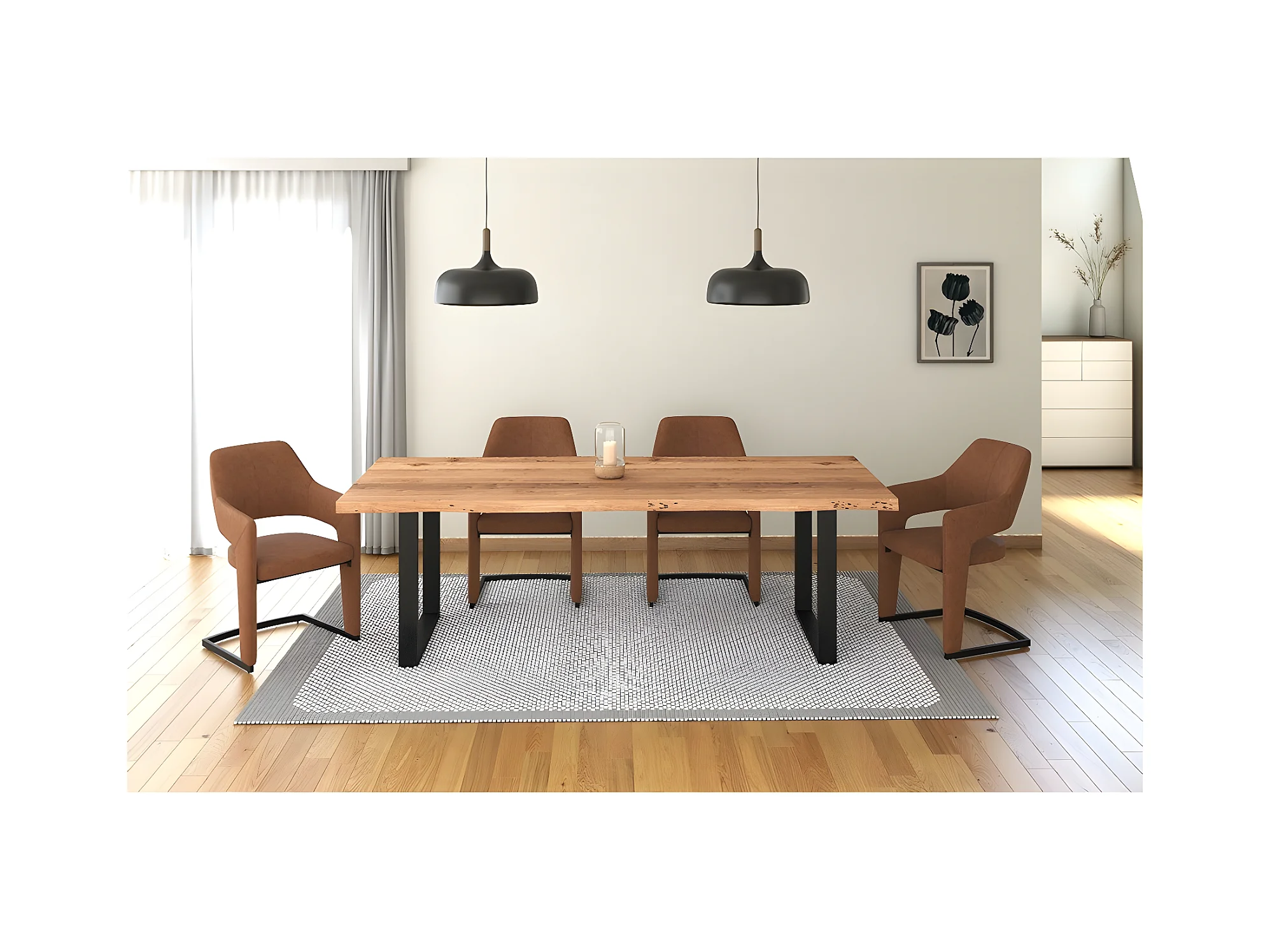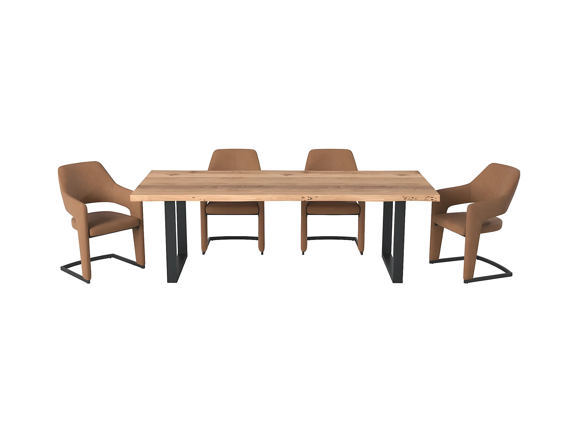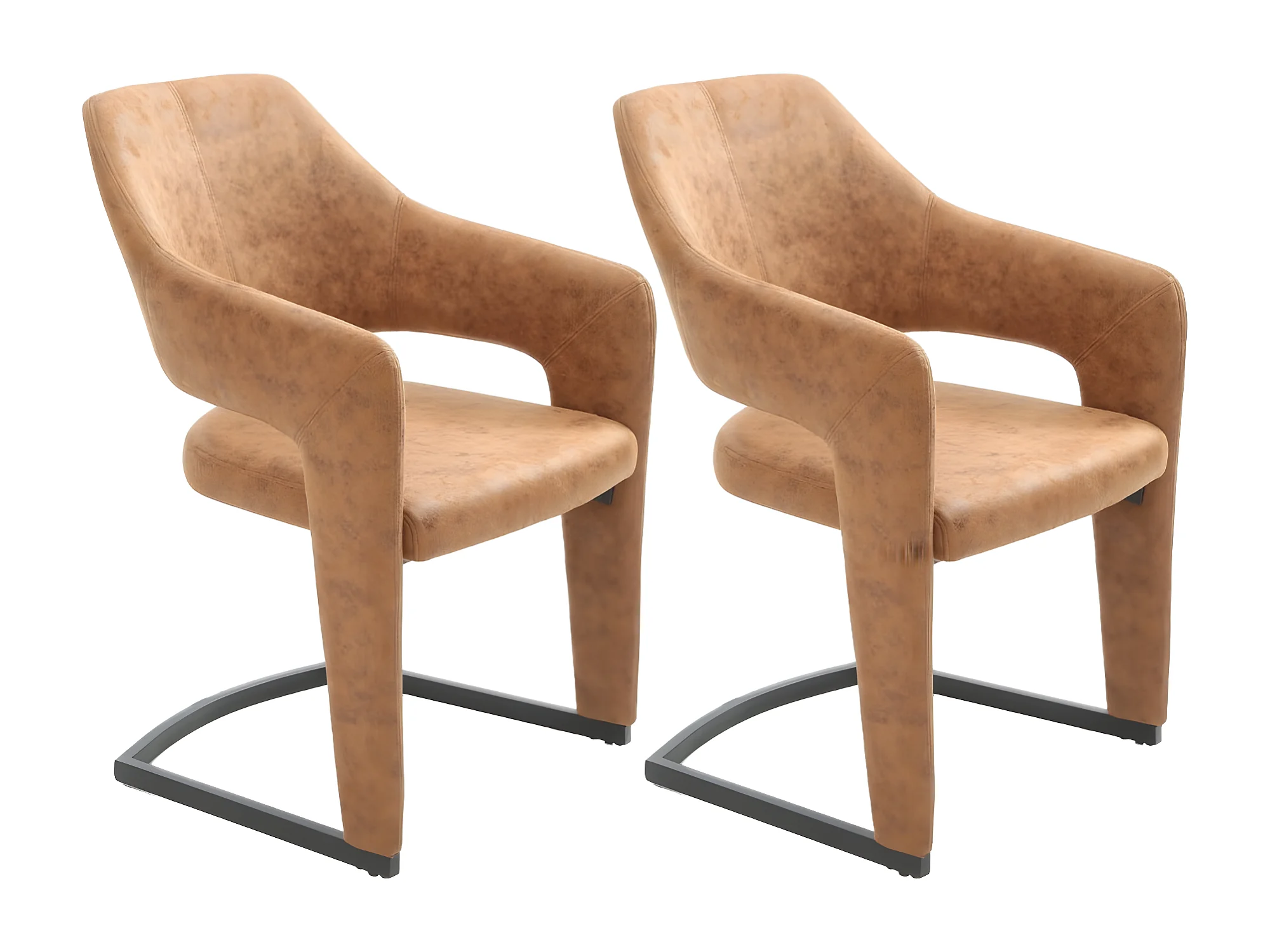 Stuhl mit armlehnen 2er-Set - Stoff & schwarzes Metall - Braun - GALI