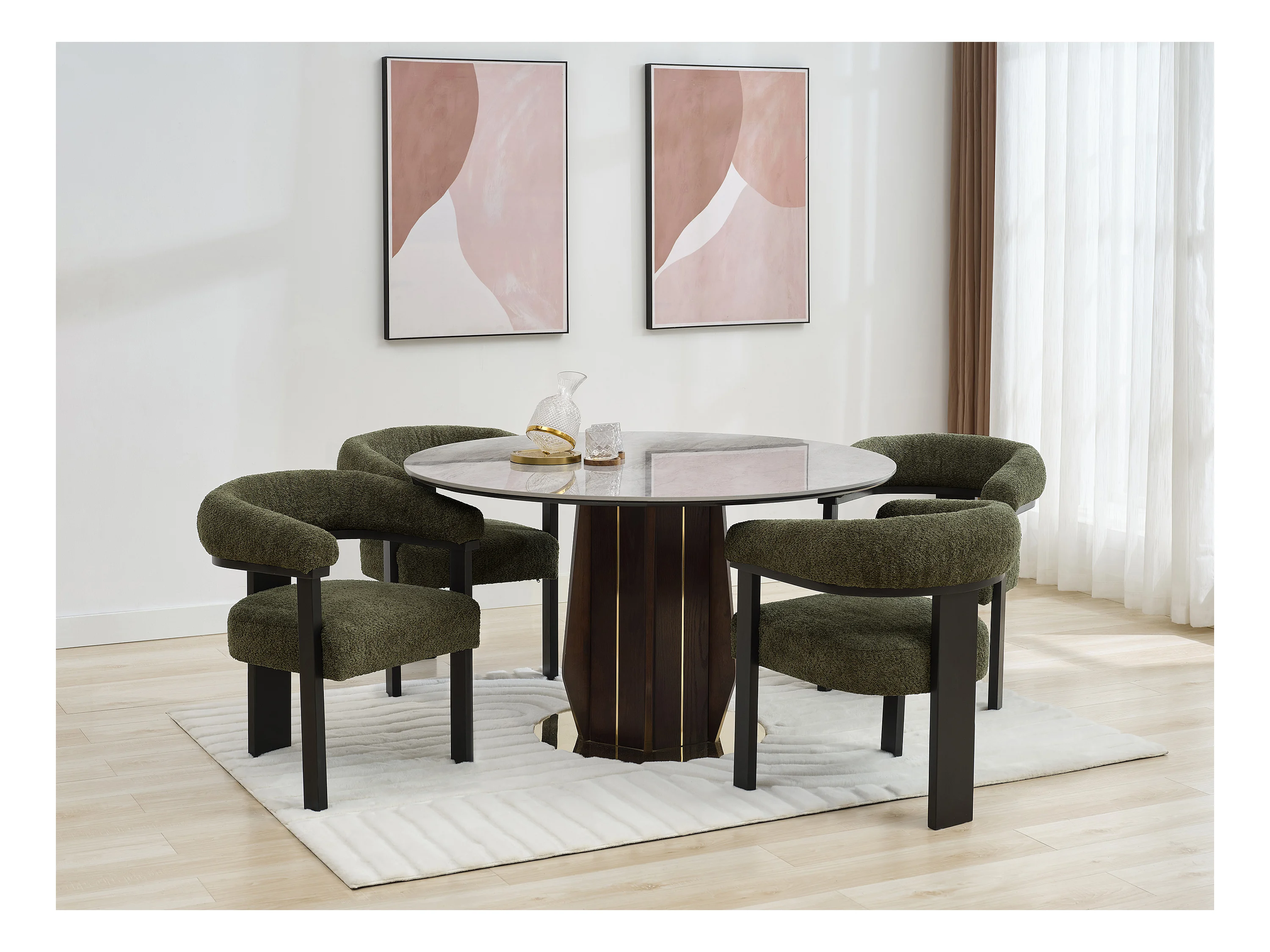 Stuhl mit Armlehnen 6er-Set - Bouclé-Stoff & Kautschukholz - Khaki & Schwarz - LIVELIA von Pascal Morabito