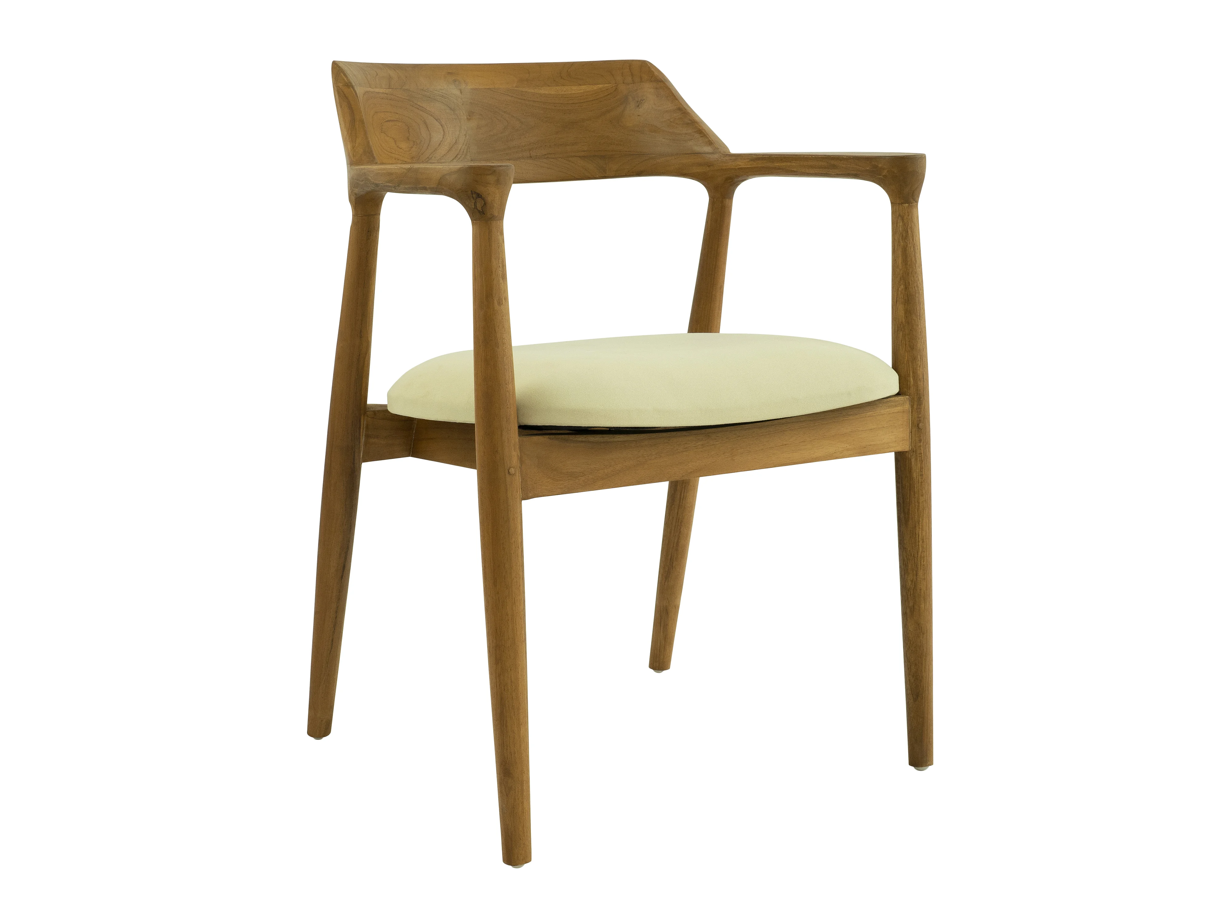 Stuhl mit Armlehnen 6er-Set - Teakholz & Stoff - Holz- & Cremefarben - SOUADY