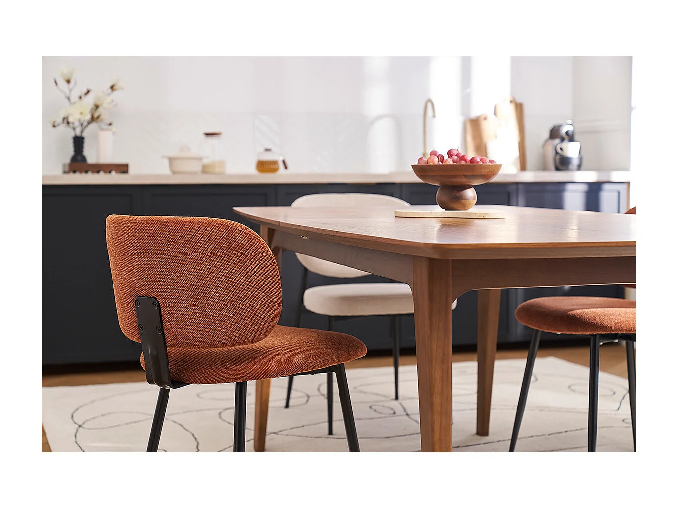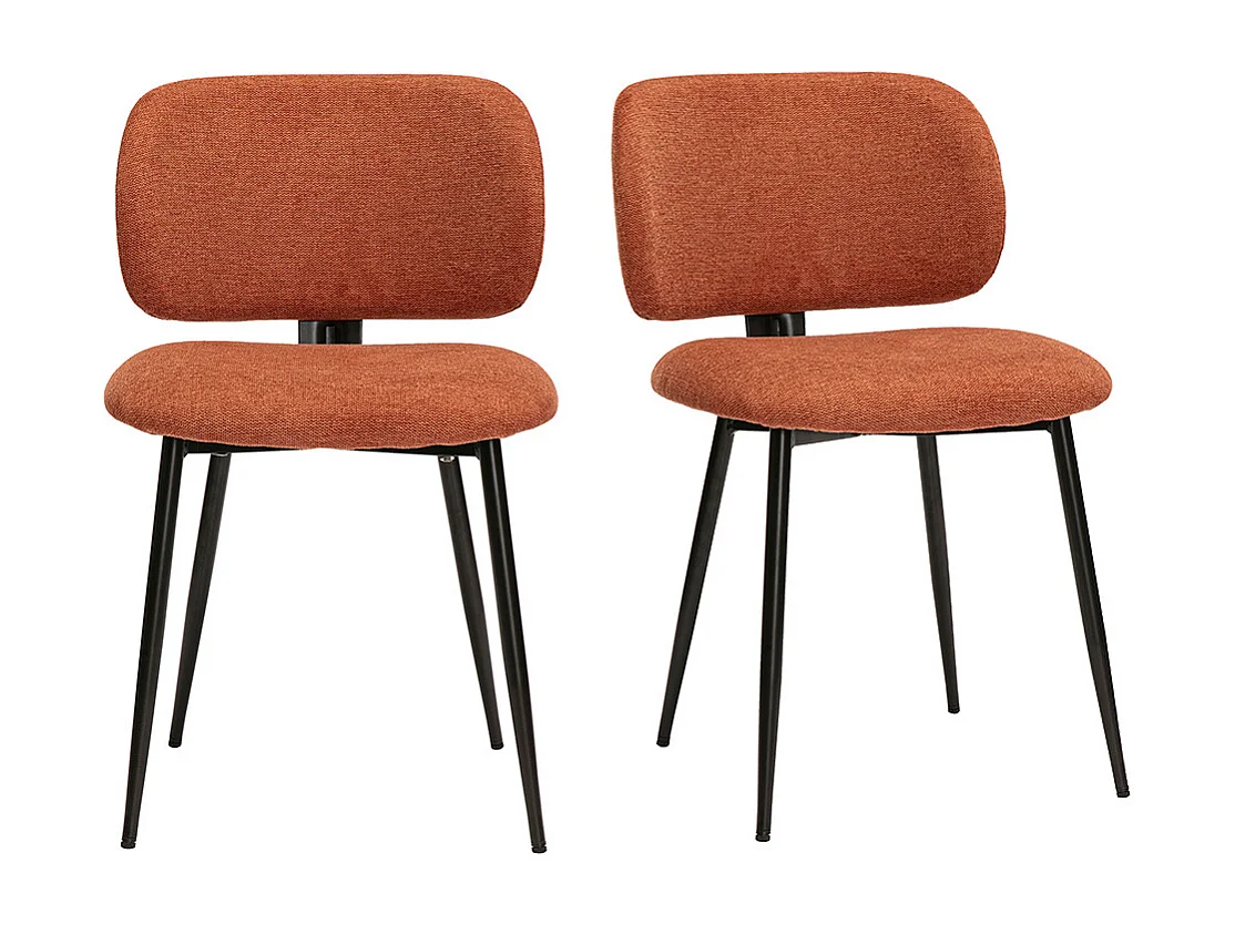 Stühle aus Stoff mit strukturiertem Samteffekt in gebrannter Erde und Schwarzem Metall (2er-Set) ATRIUM