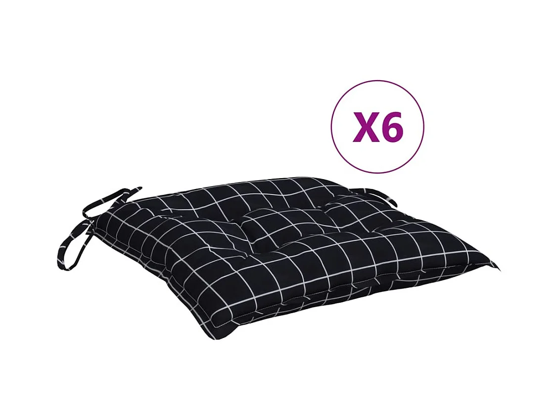 Stuhlkissen 6 Stück schwarz kariert 50x50x7 cm Oxford-Stoff