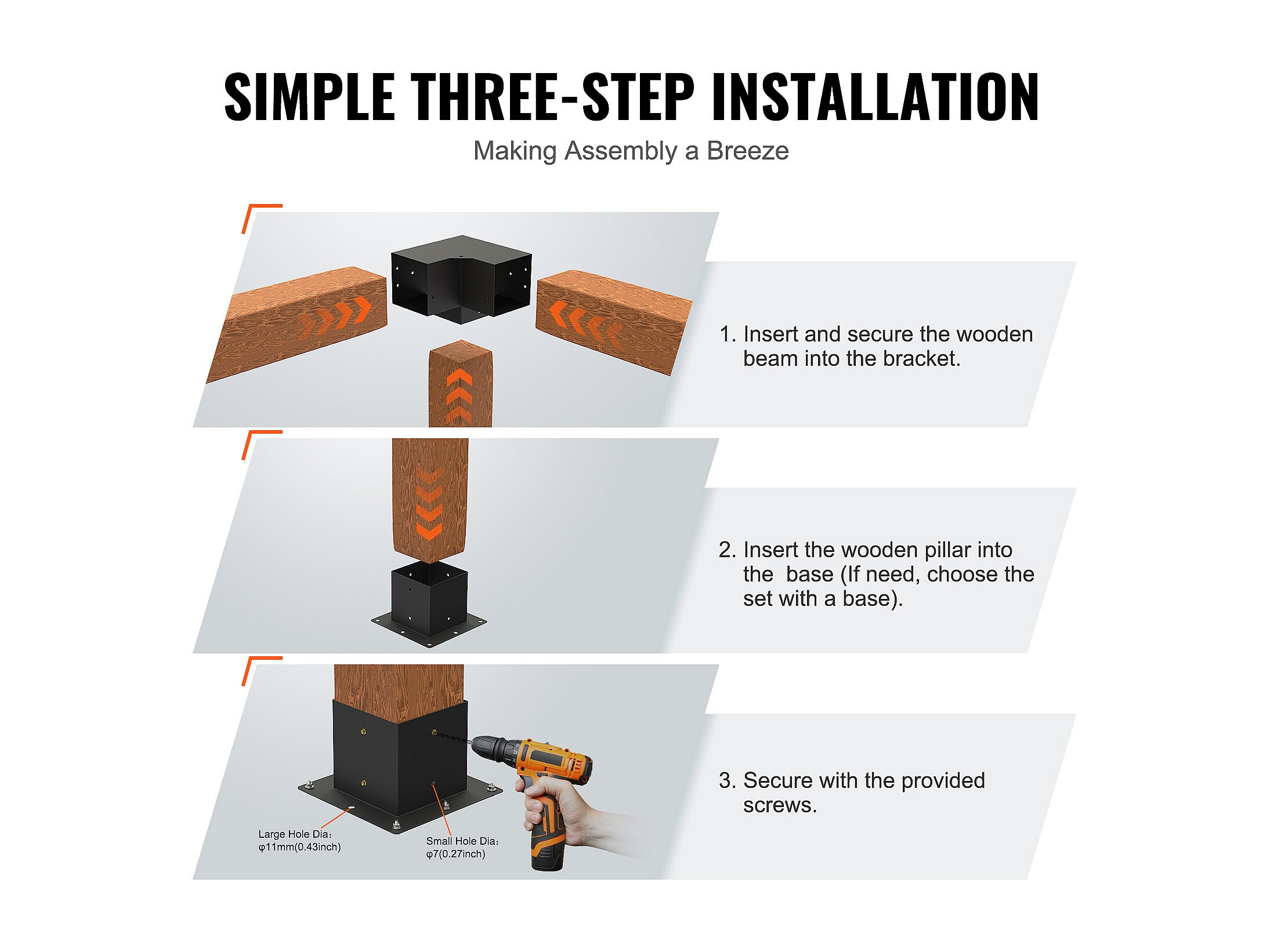Stützensatz für Pergola SucceBuy 15.24x15.24 cm 3 innere Wege 14.2x14.2 cm 4 Stück