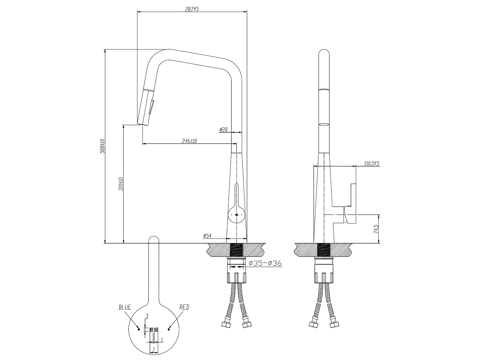 Style Spültischmischer mit Handbrause Mattschwarz und Roségold Essebagno