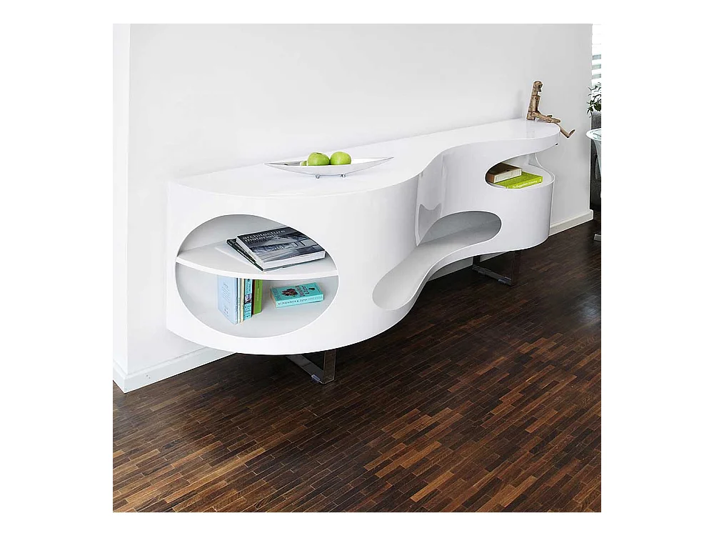 Stylische Anrichte in Hochglanz Weiß geschwungen geformt