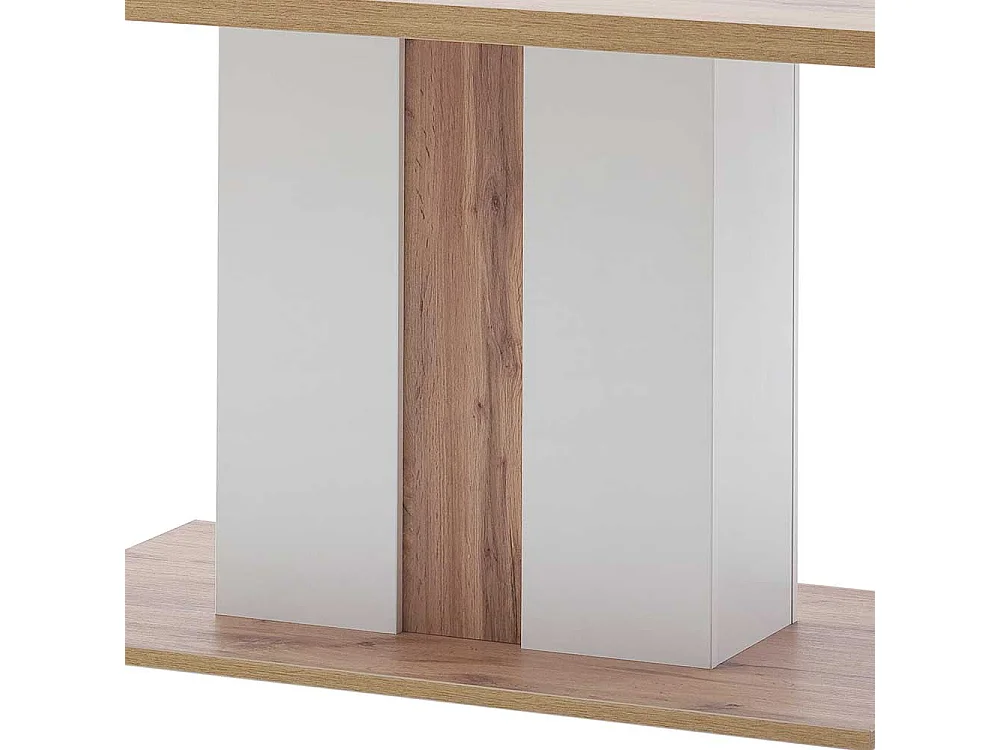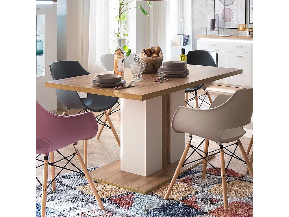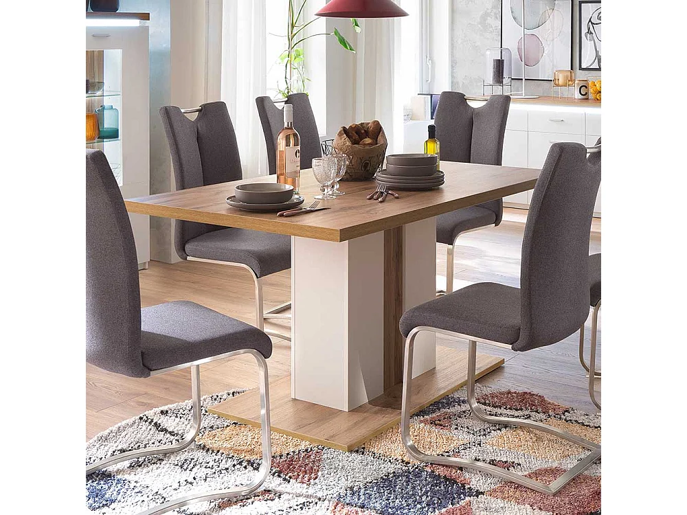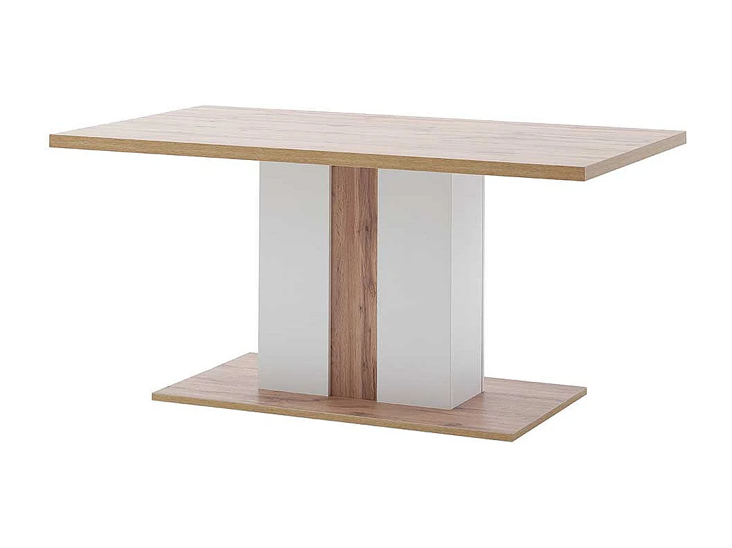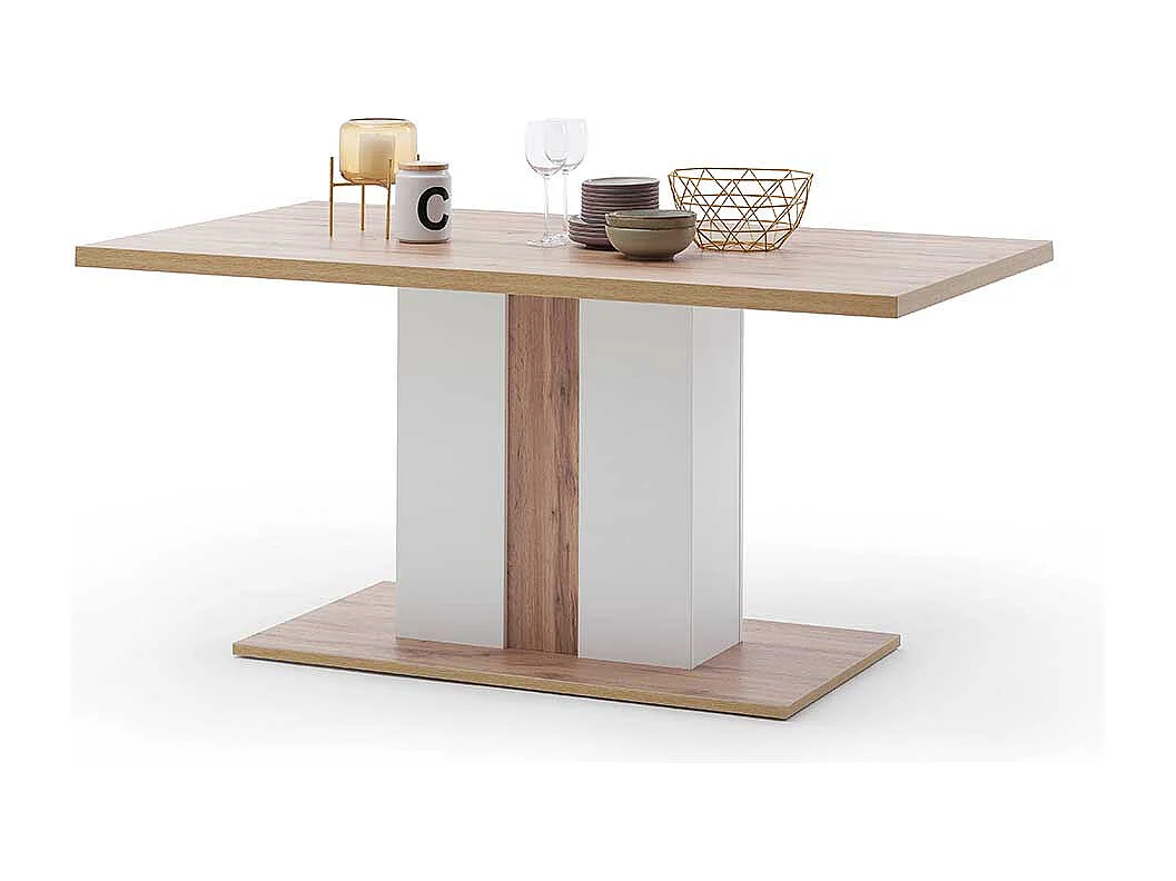 Säulen Esszimmertisch in Weiß und Wildeiche Optik 160 cm breit
