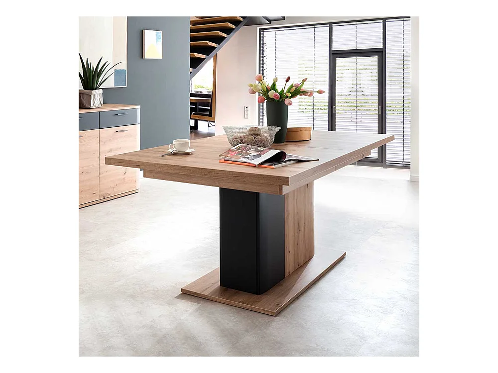 Säulentisch in Eichefarben und Anthrazit Mittelauszug