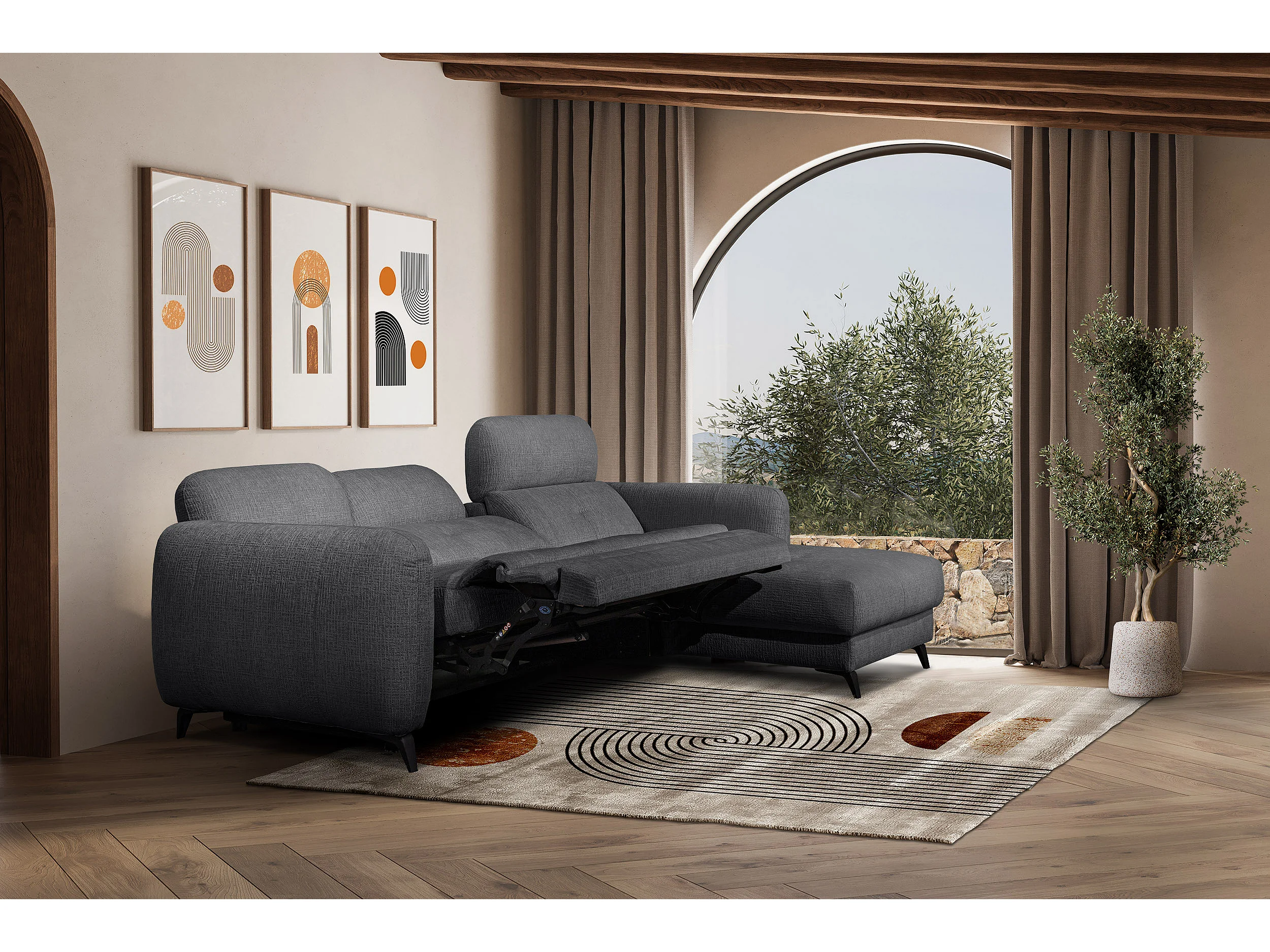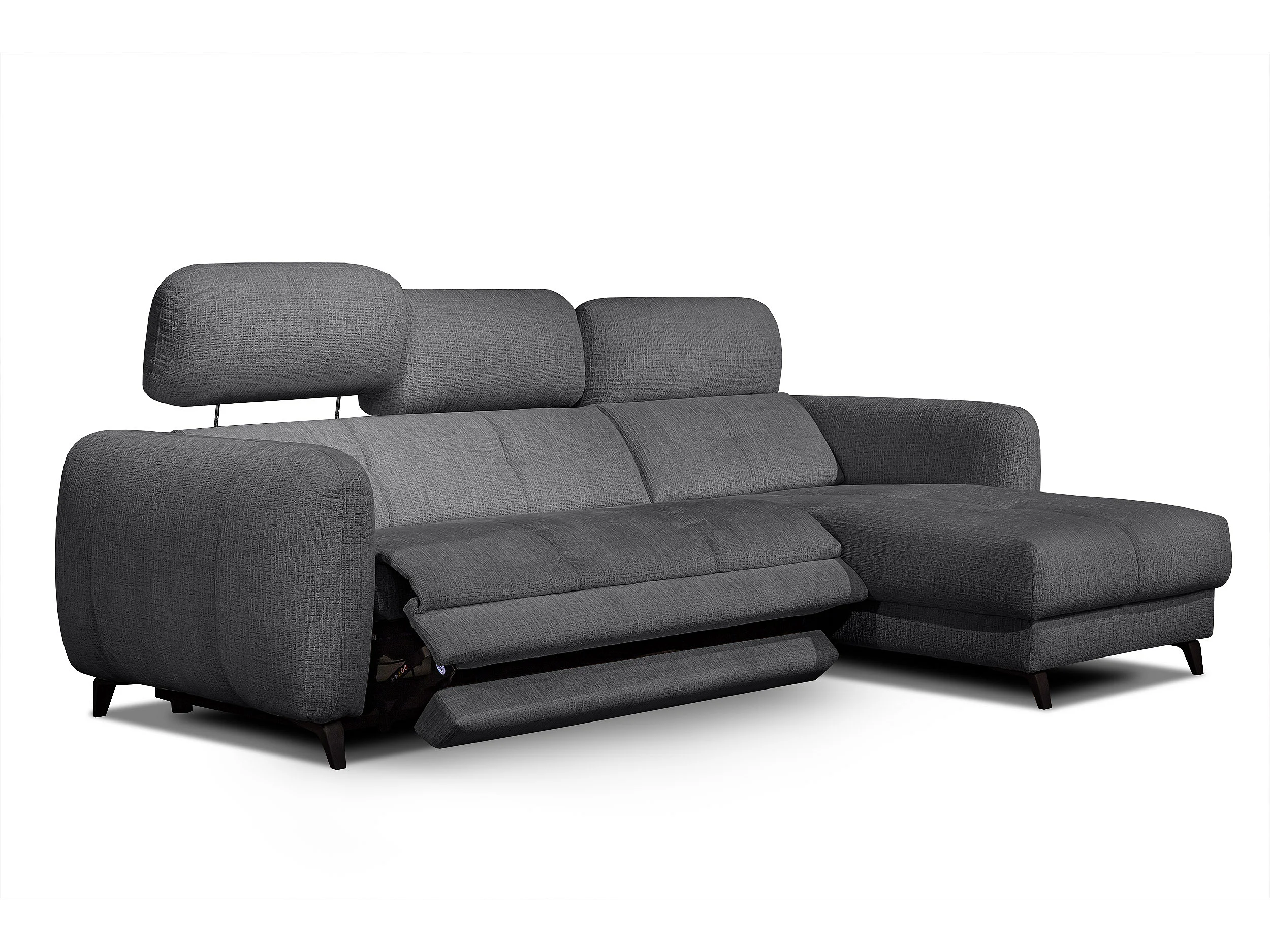 SVEN 3-Sitzer-Ecksofa, 1 Relax XL verstellbare Kopfstützen, dunkelgrau