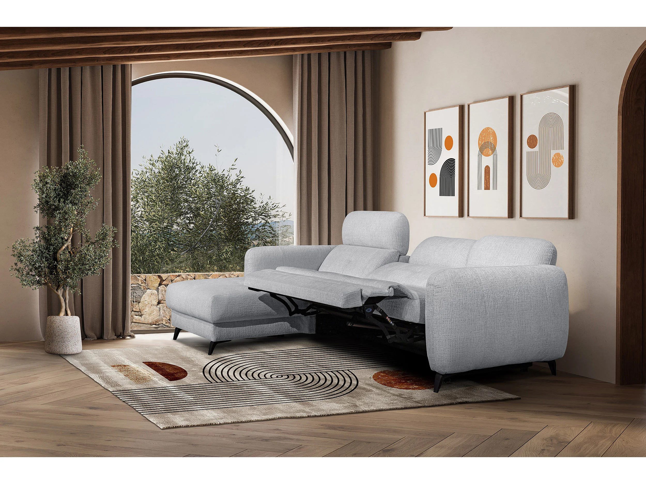SVEN 3-Sitzer-Ecksofa, 1 Relax XL, verstellbare Kopfstützen, hellgrau