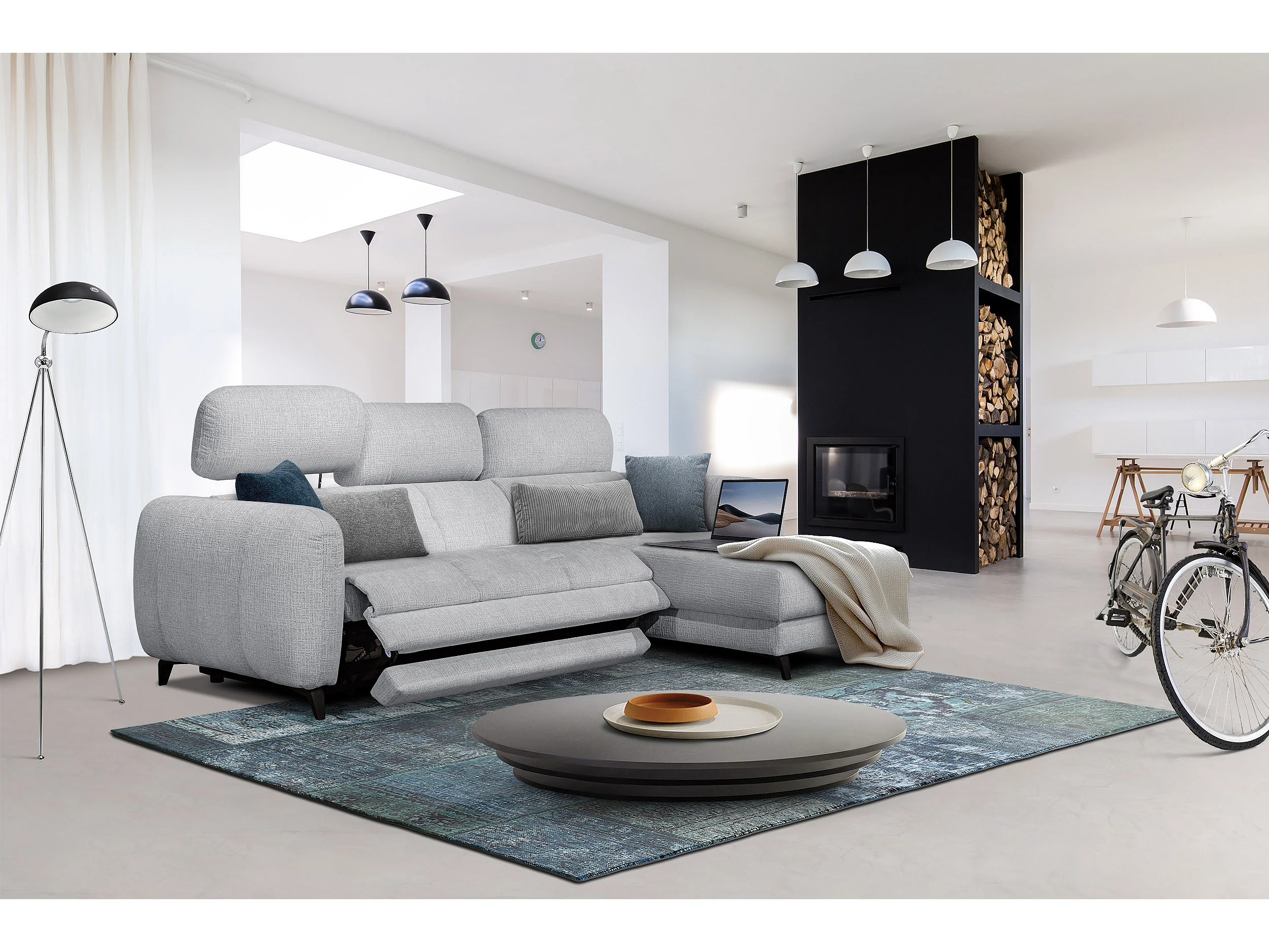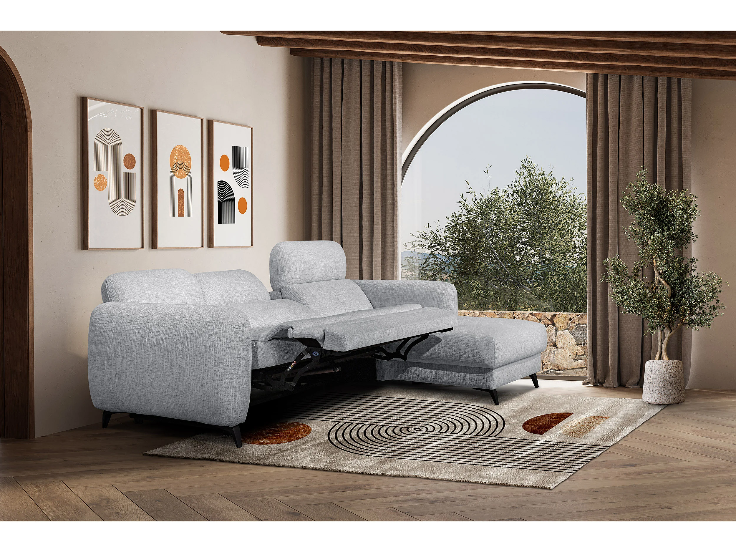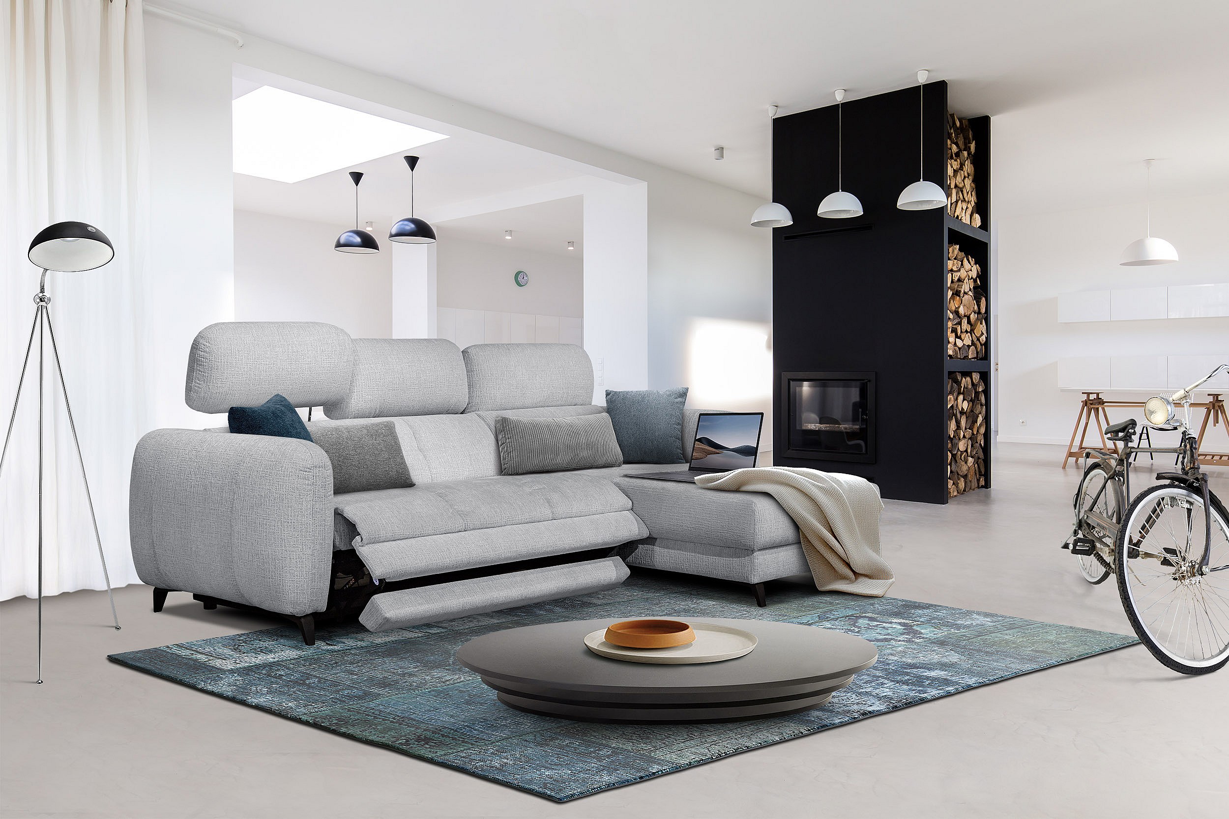 SVEN 3-Sitzer-Ecksofa, 1 Relax XL verstellbare Kopfstützen, hellgrau