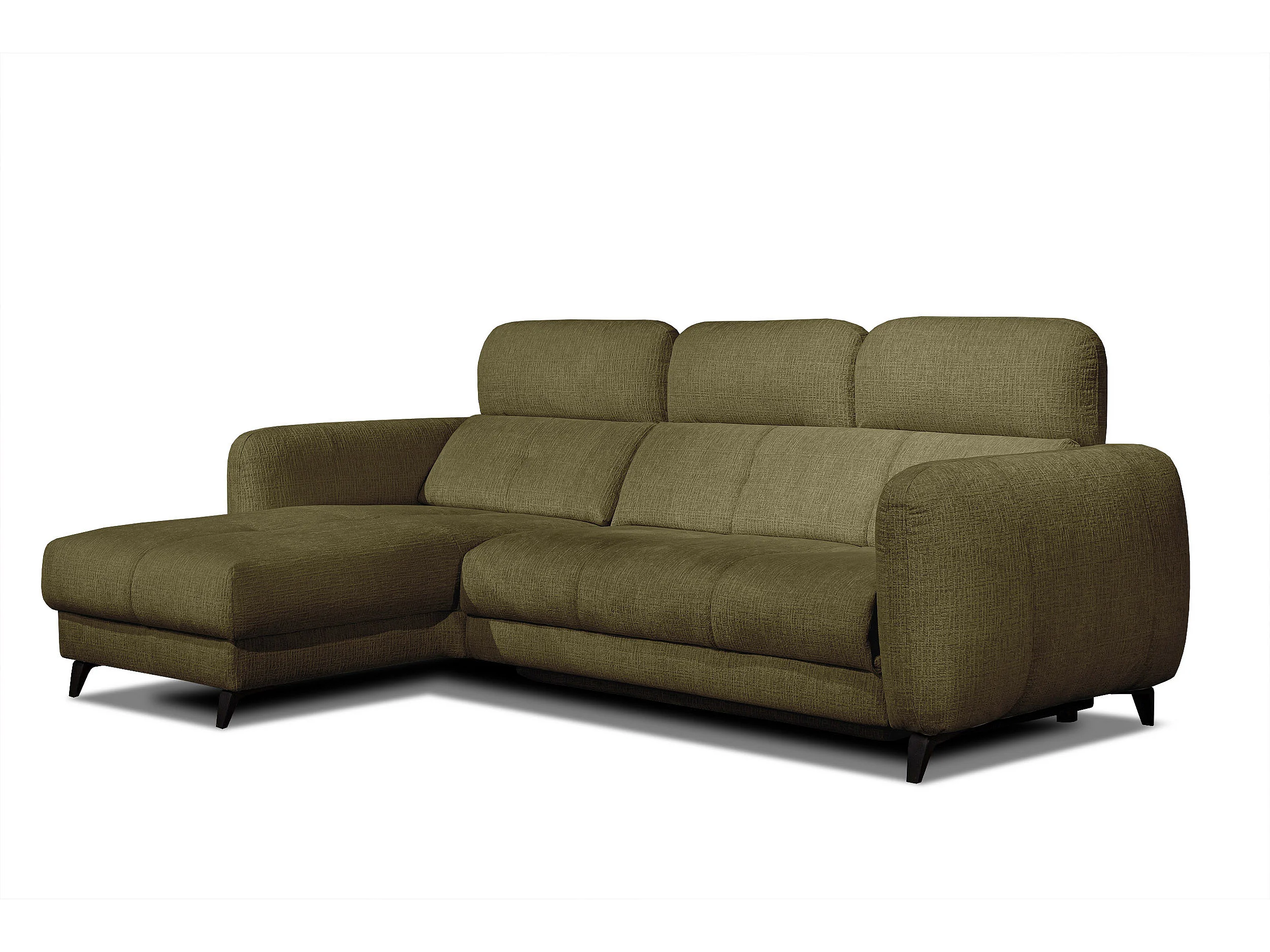 SVEN 3-Sitzer-Ecksofa, 1 Relax XL, verstellbare Kopfstützen, olivgrün