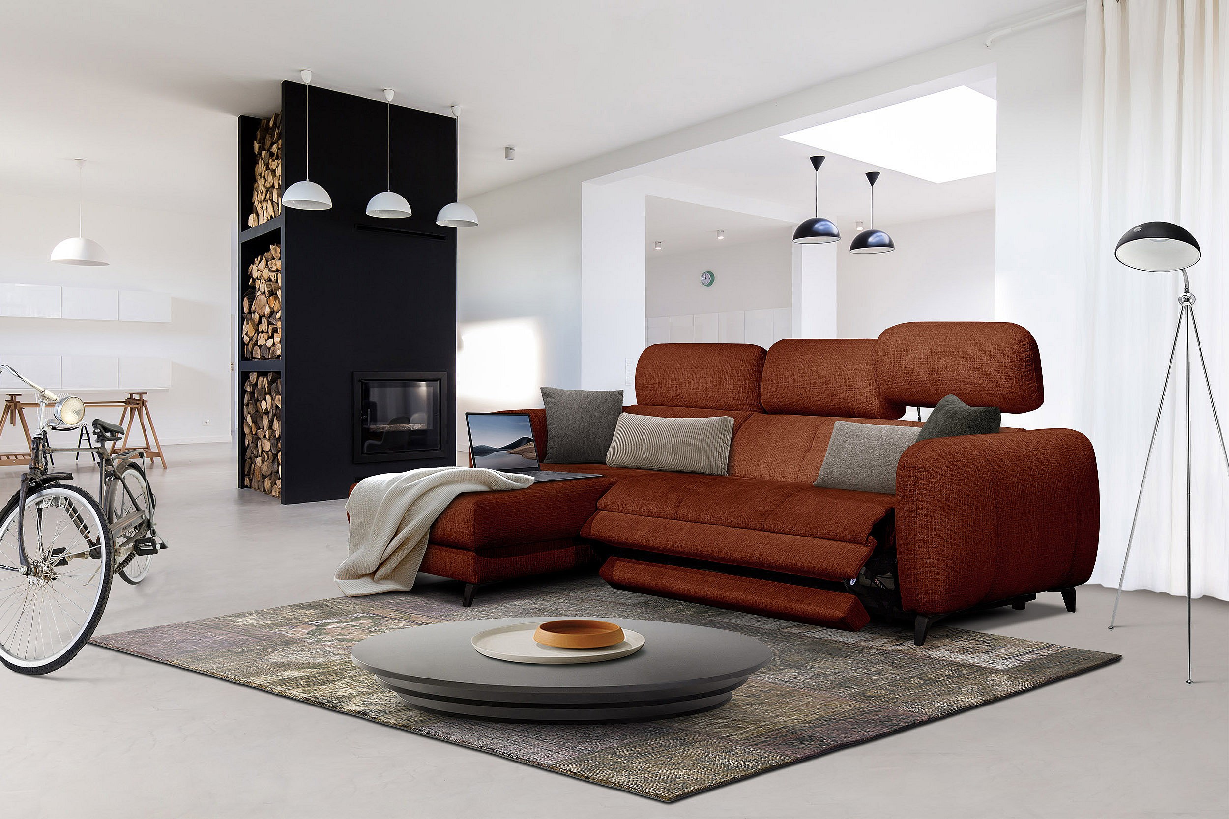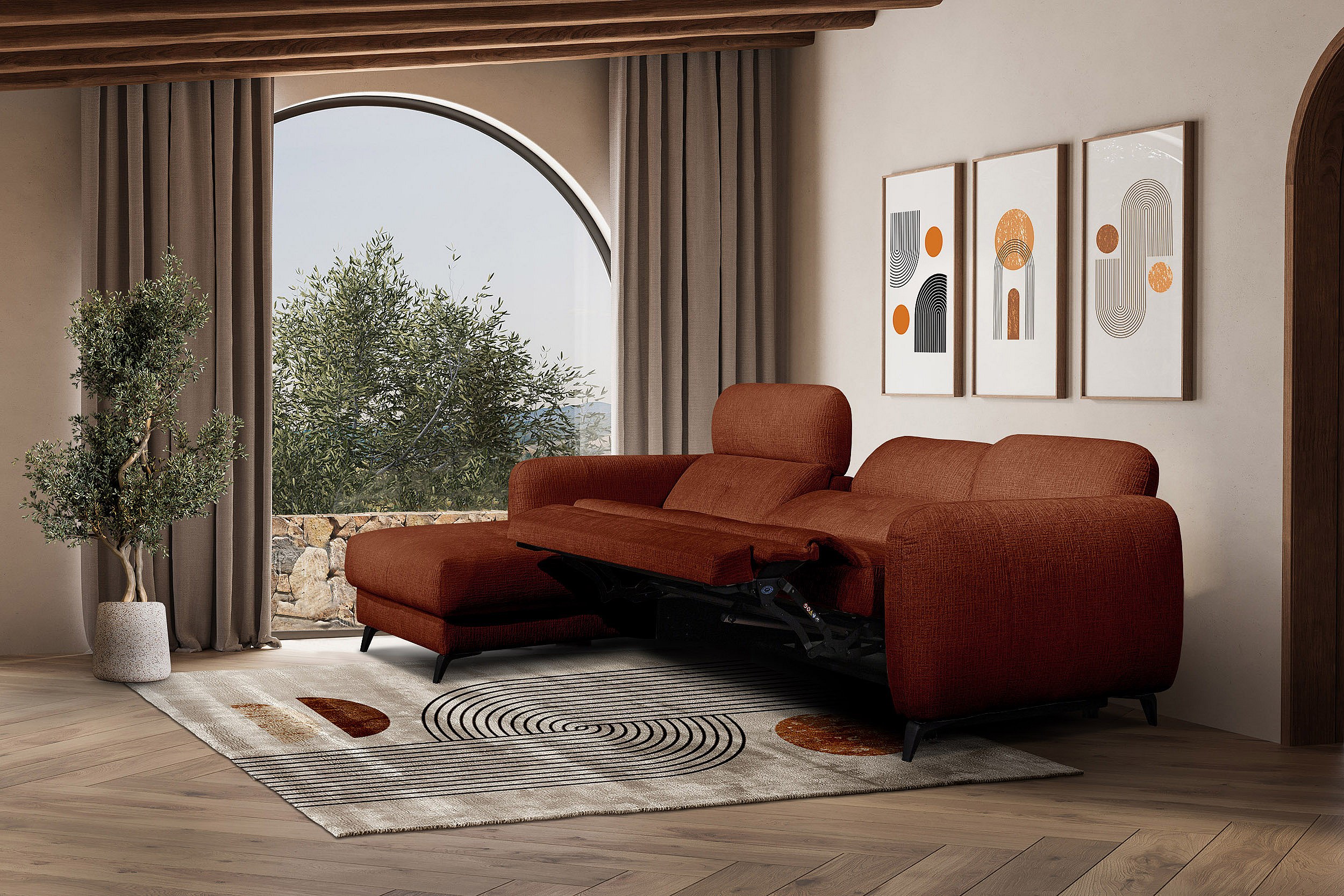 SVEN 3-Sitzer-Ecksofa, 1 Relax XL, verstellbare Kopfstützen, rot