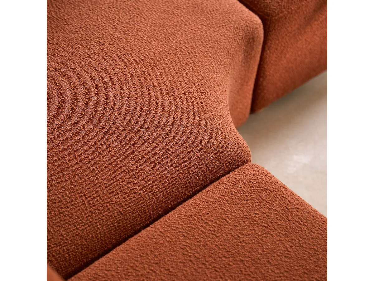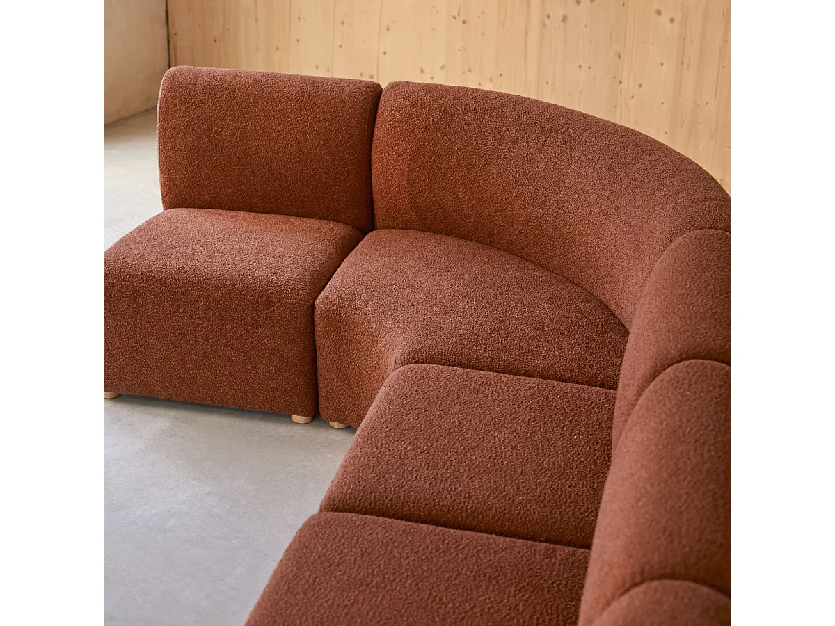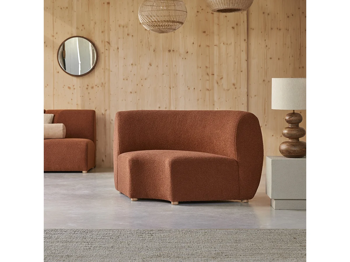 Swann – Modularer Ecksessel aus massivem Akazienholz mit terrakottafarbenem Stoffbezug
