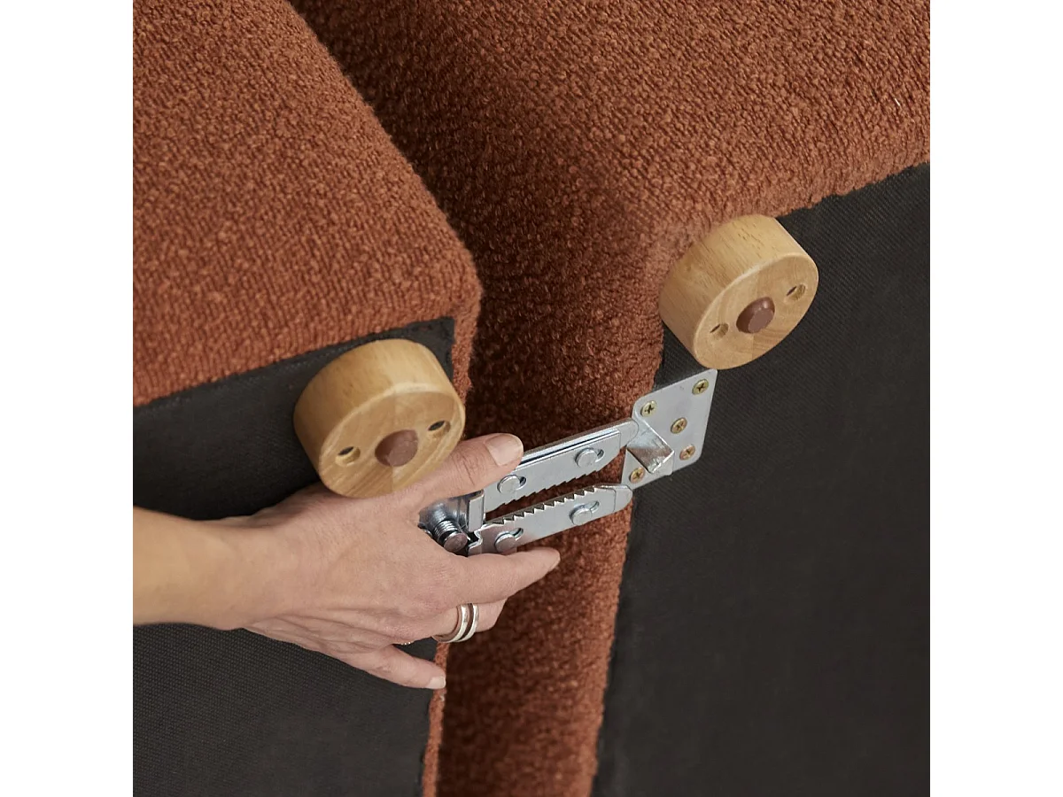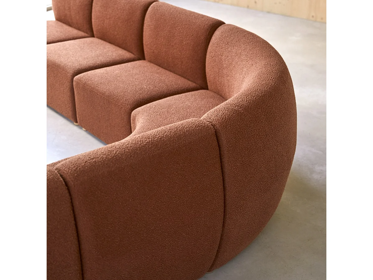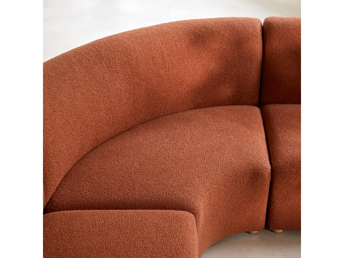 Swann – Modularer Ecksessel aus massivem Akazienholz mit terrakottafarbenem Stoffbezug
