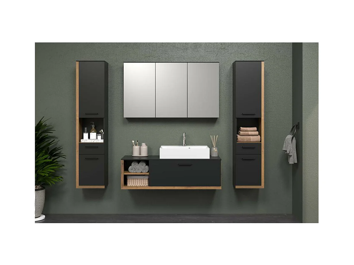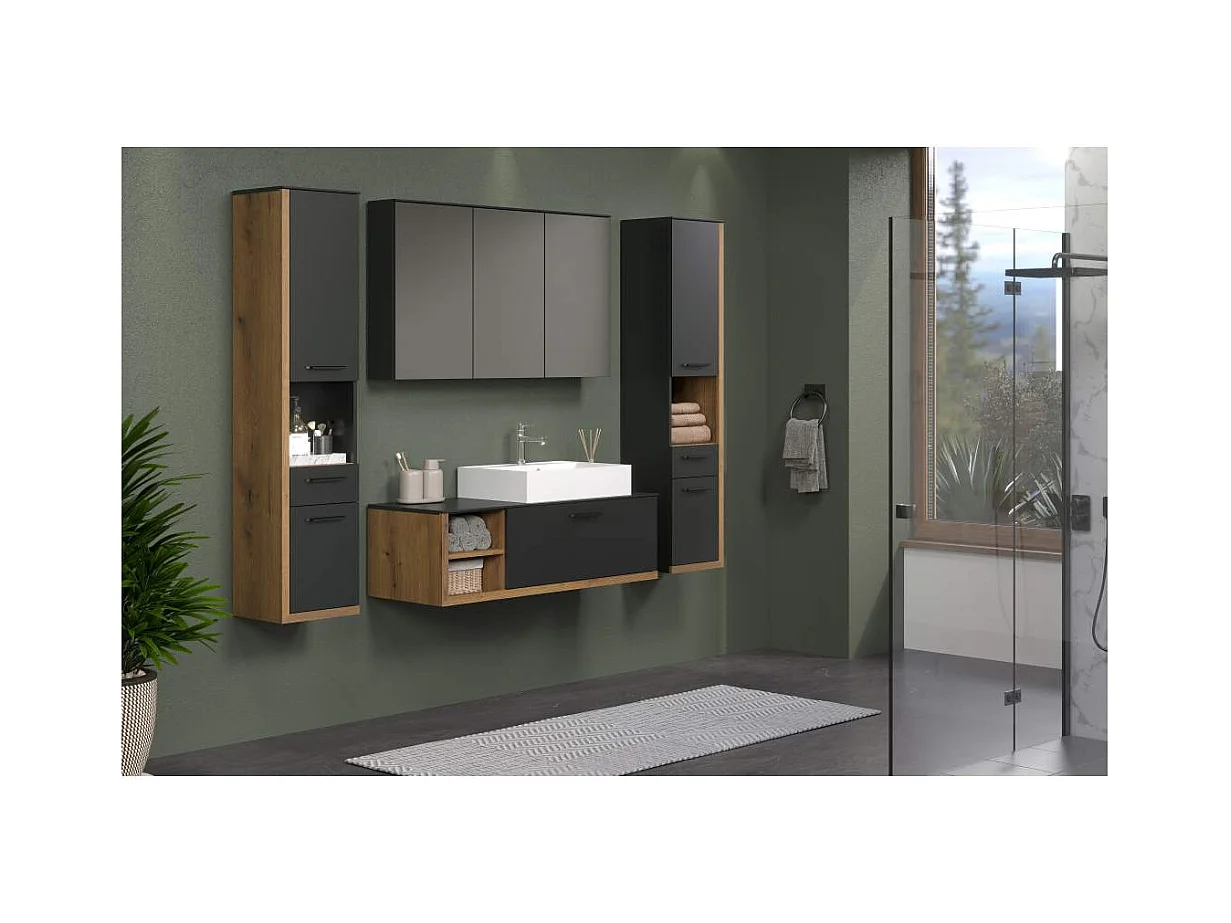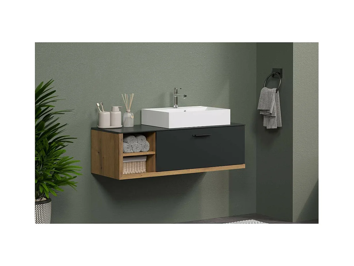 Synnax Waschbeckenunterschrank grau, Eiche dekor.