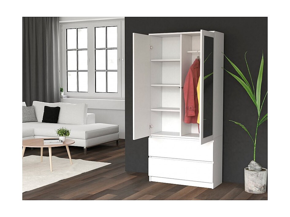 Szafa Malwa SS-90L | Biały | 90x50x180 | Szafa, Lustra, 2 Szuflady