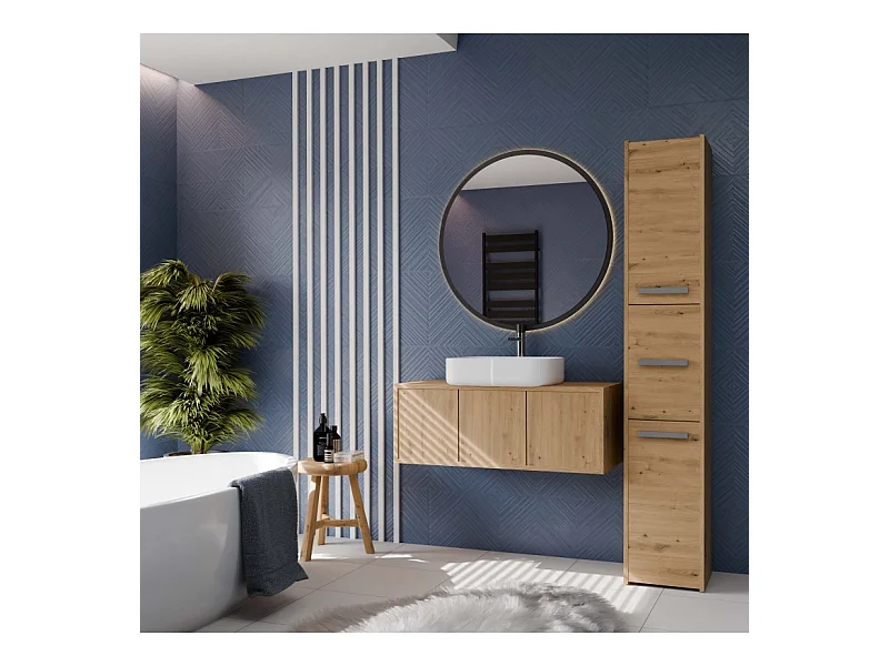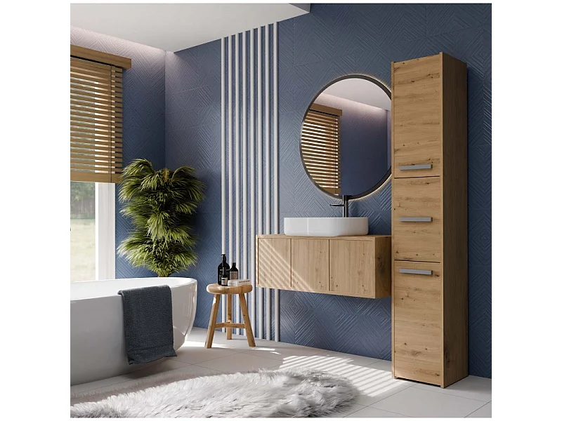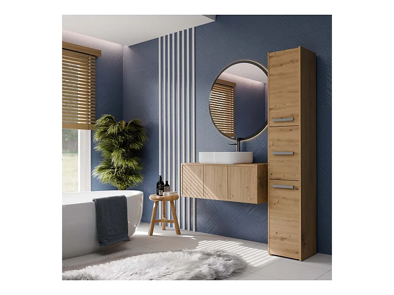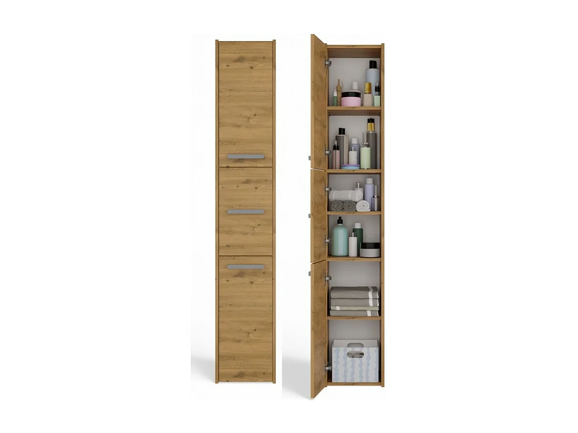 Szafka Łazienkowa SARA S33 | Dąb Artisan | 30x30x170 cm | 3 Drzwi, Półki