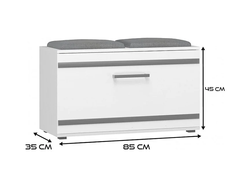 Szafka Opal | Biała | 85x35x45 cm | Szafka na buty z siedziskiem