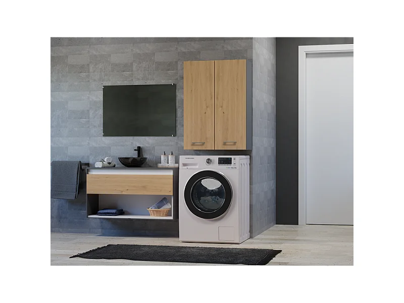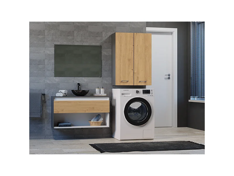 Szafka Pola MINI DD | Antracyt/Dąb Artisan | 64x30x90 cm | Szafka Łazienkowa Wisząca