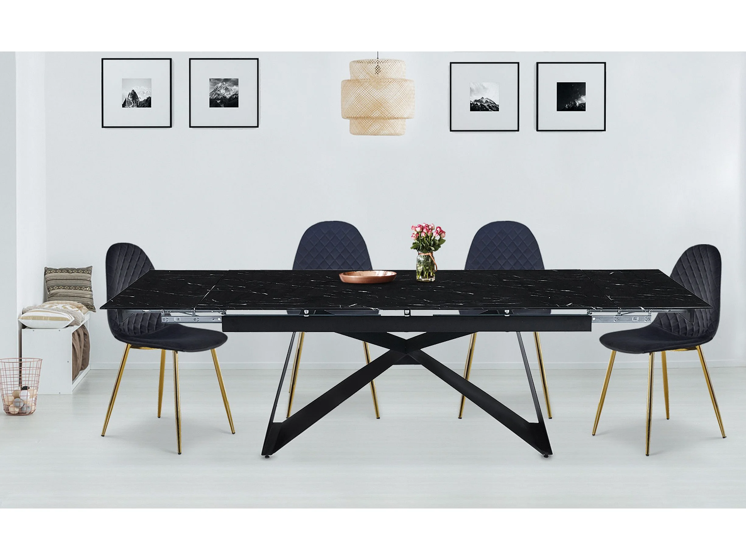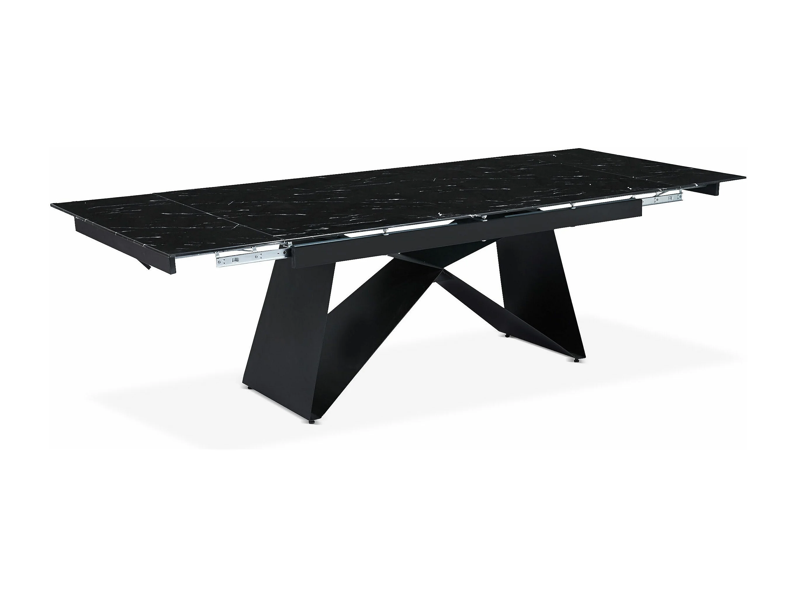 Table à manger extensible Mogarie en Verre effet marbre noir et pieds Métal Noir
