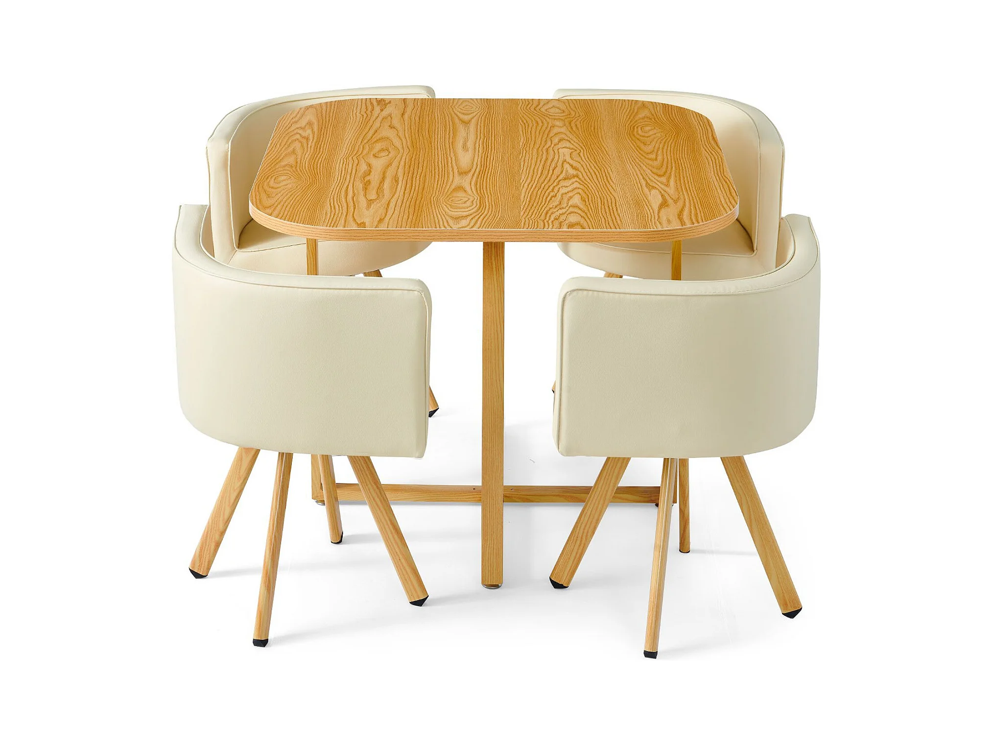 Essgruppe & 4 Stühle Skandinavisches Design "Oslo" Beige