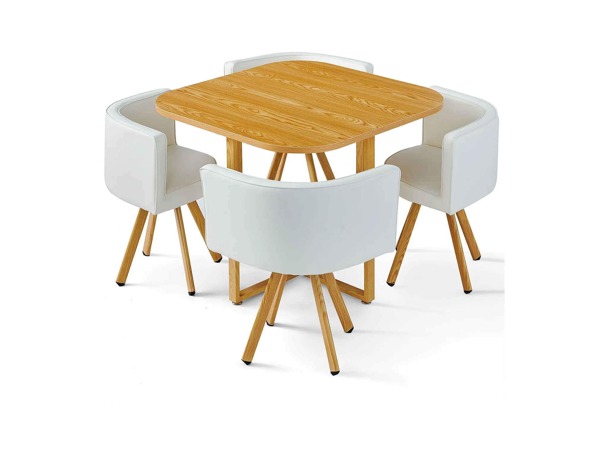Skandinavischer Esstisch-Set Oslo Weiß & Eiche - 4 moderne Designstühle