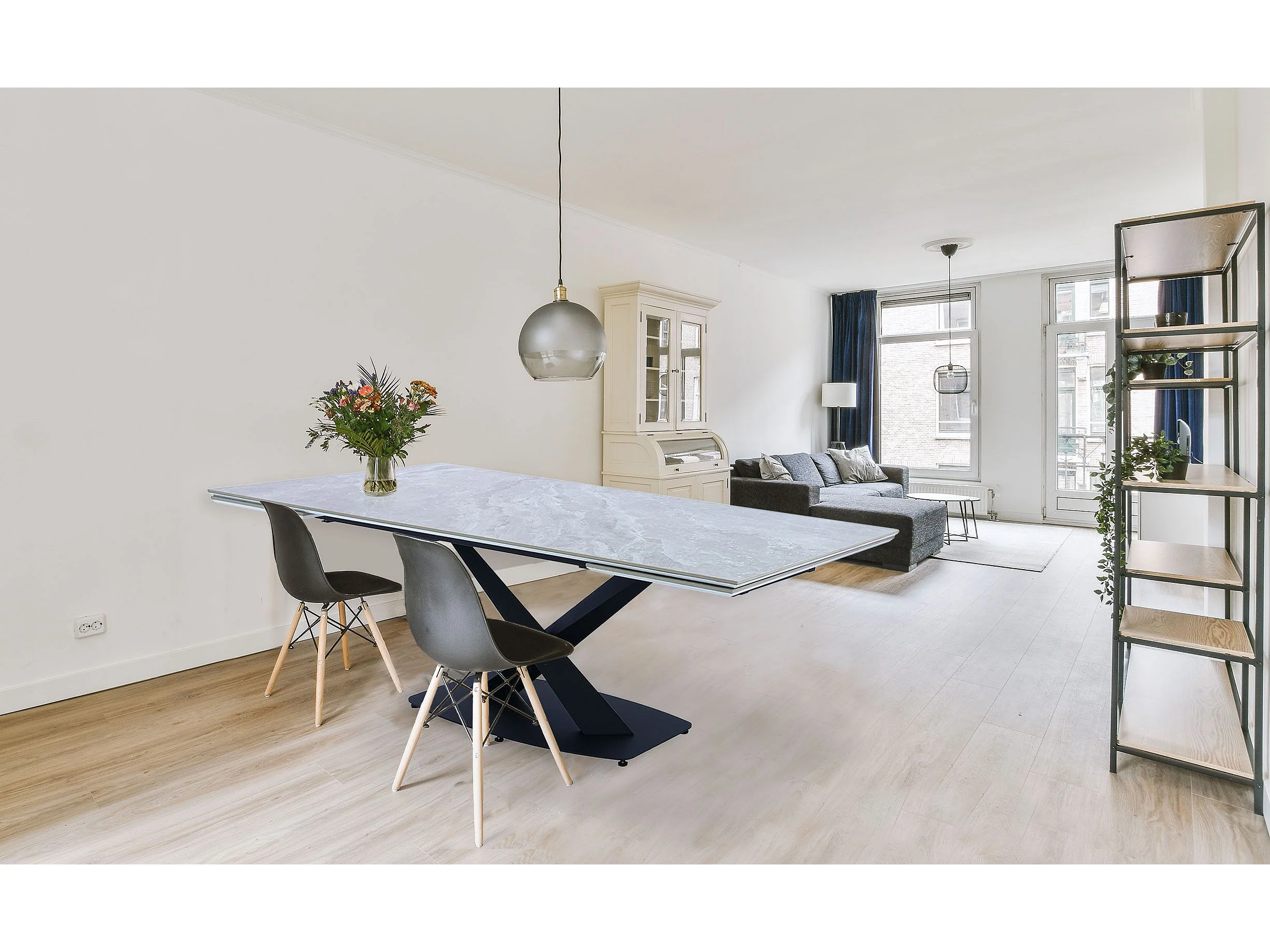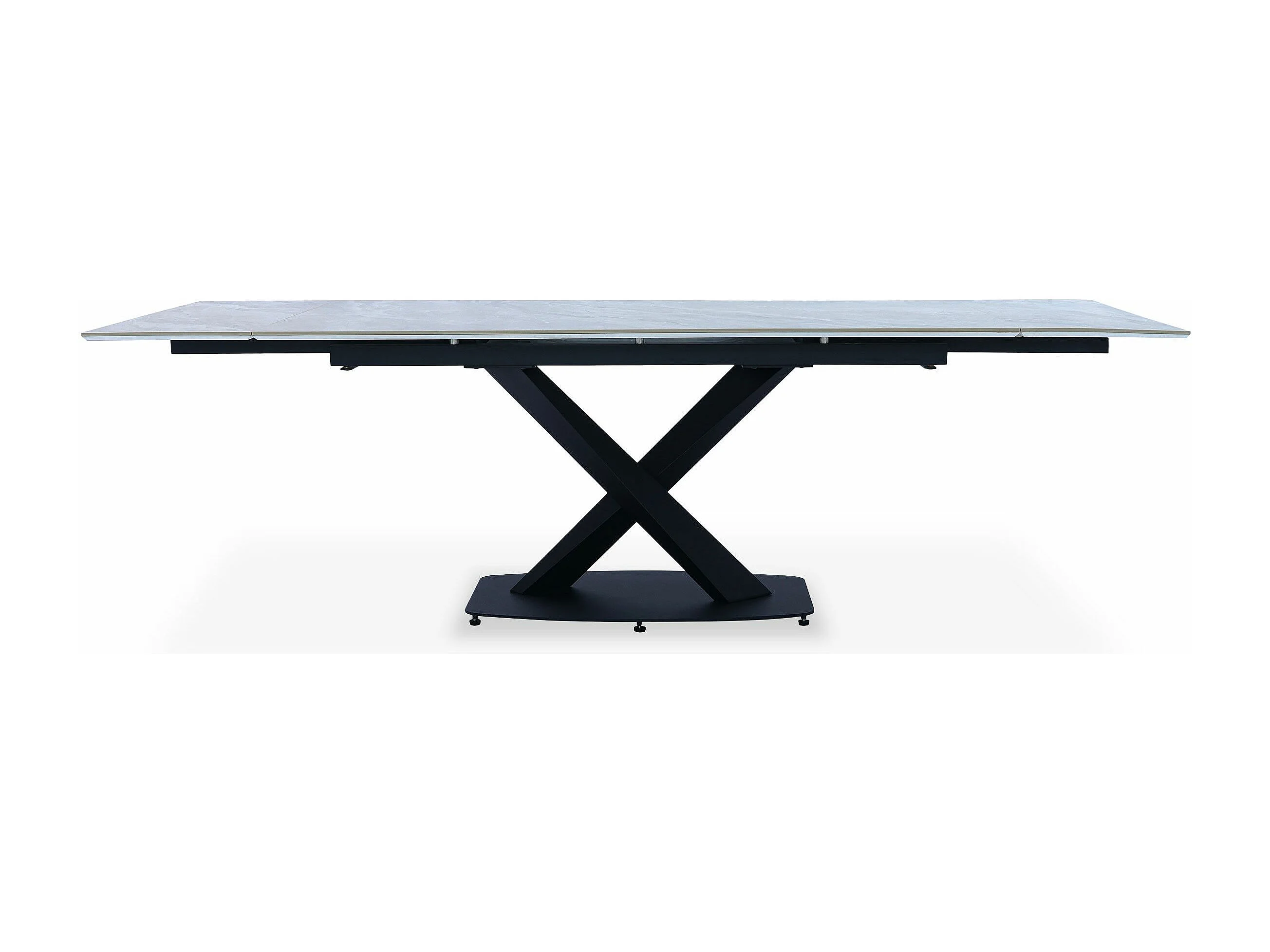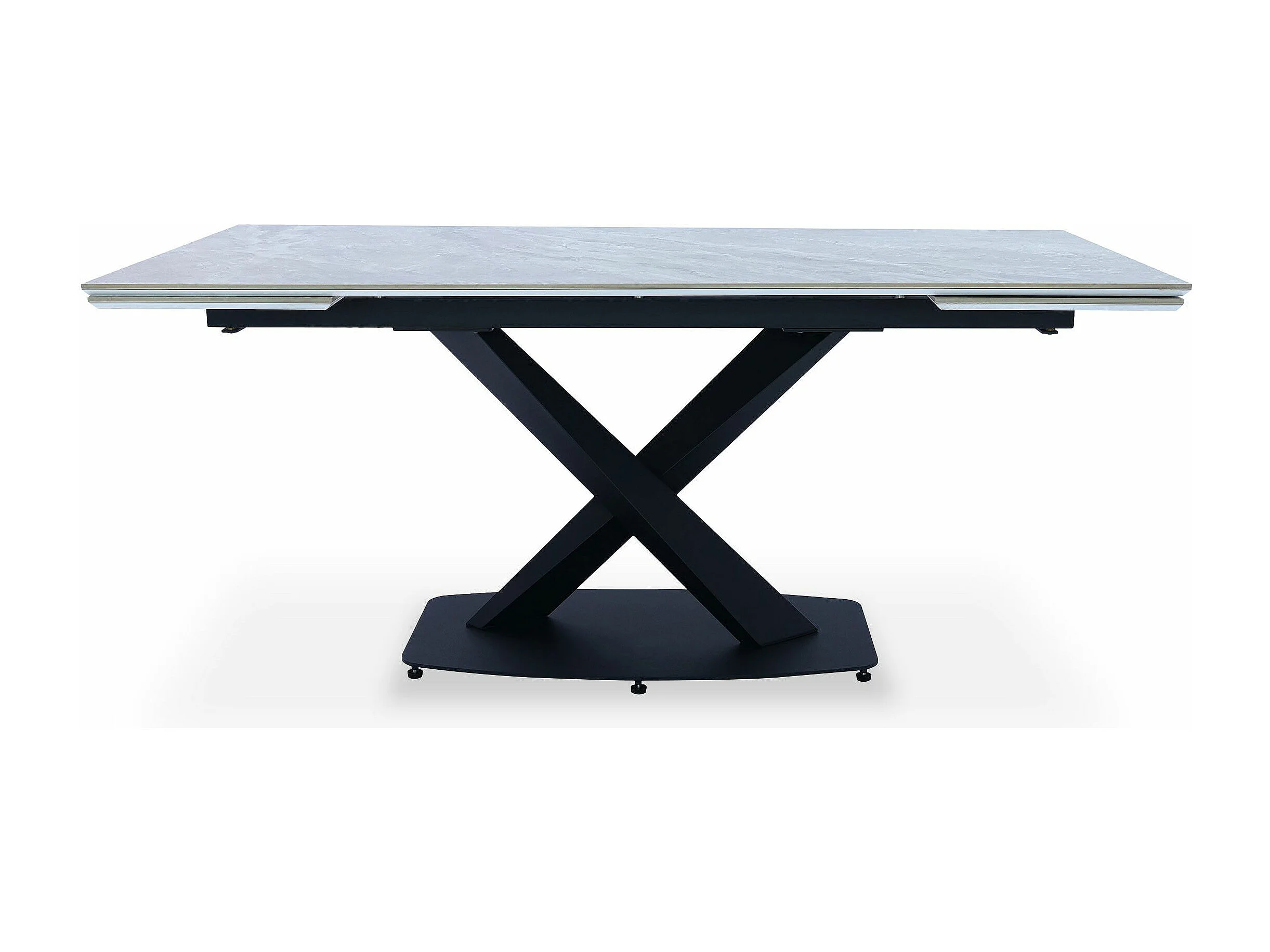 Table extensible moderne Valorane Céramique effet marbre gris pieds Noir