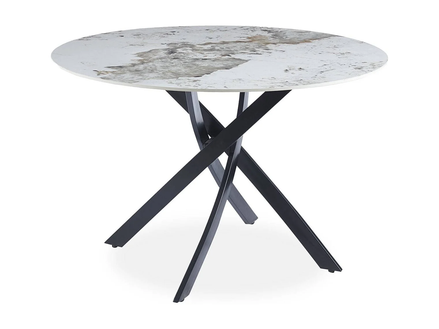 Table ronde Bangui 120cm Céramique effet marbre Blanc et pieds croisés Métal Noir