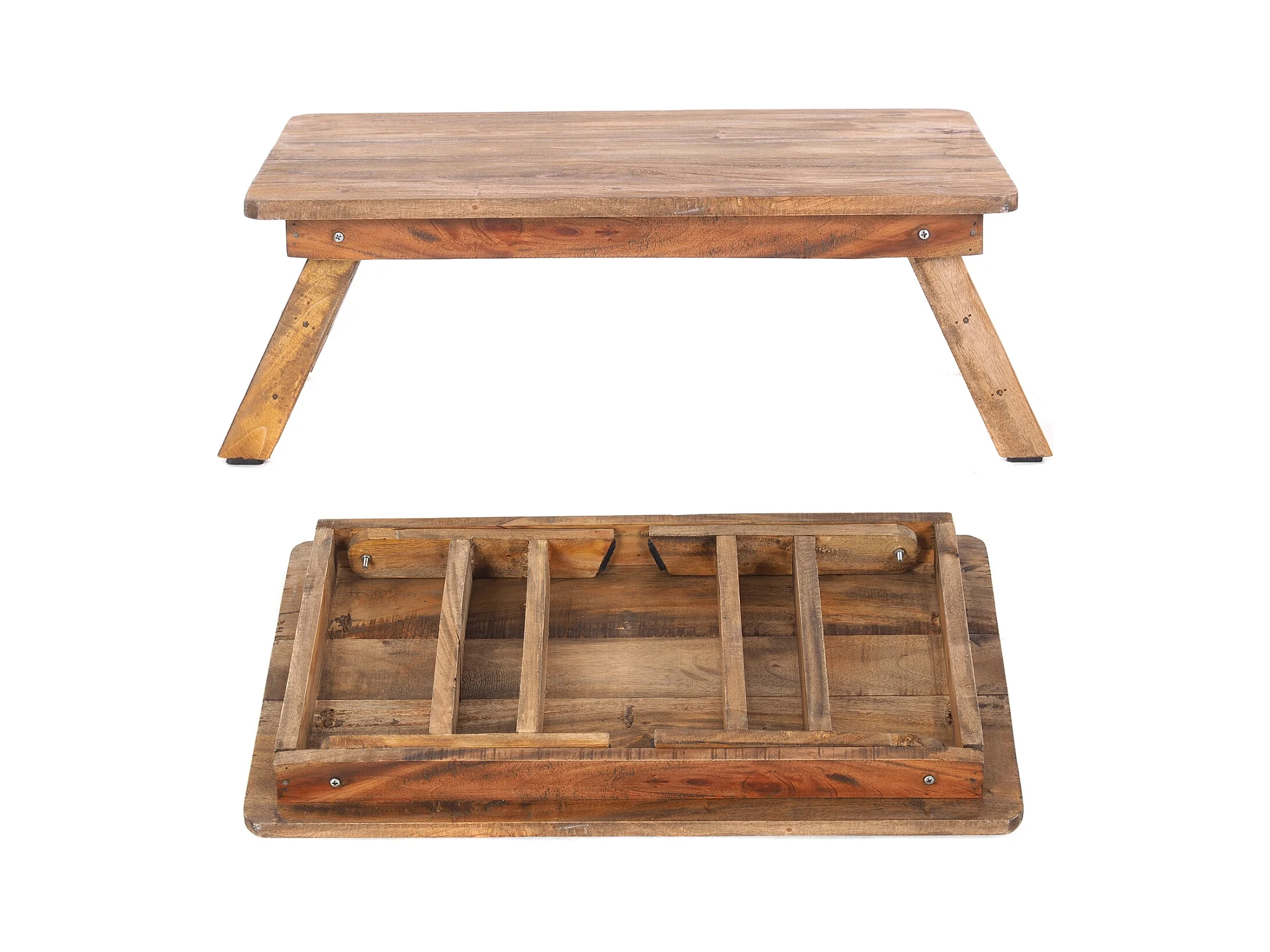 TABLETT-TISCH FOLD 60x40 cm, Mahagoni Massivholz, mit ausklappbaren Füßen 01 natur-vintage