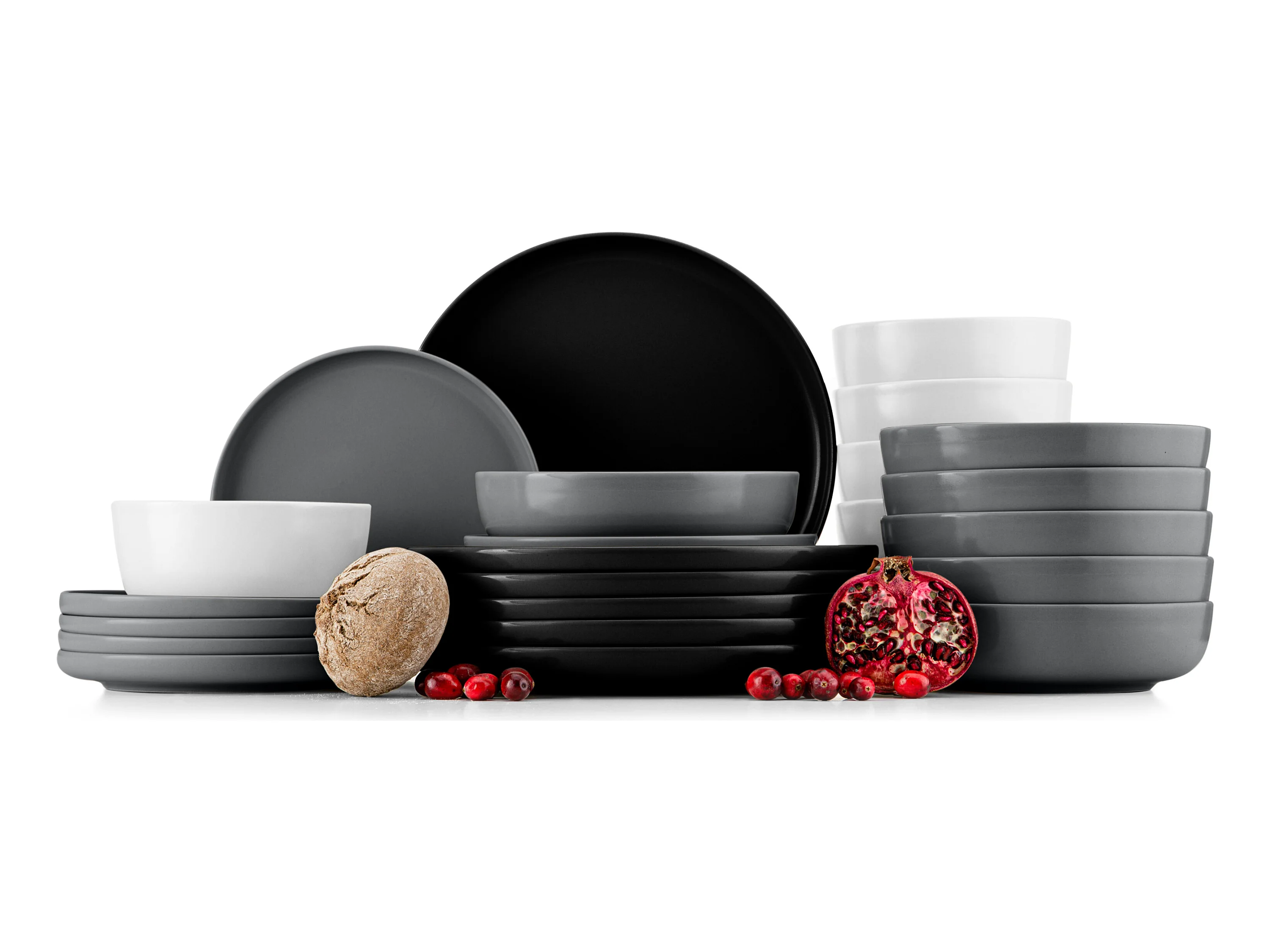 Tafelservice 6 Personen 24-tlg - Weiß, Schwarz, Grau - VICTO