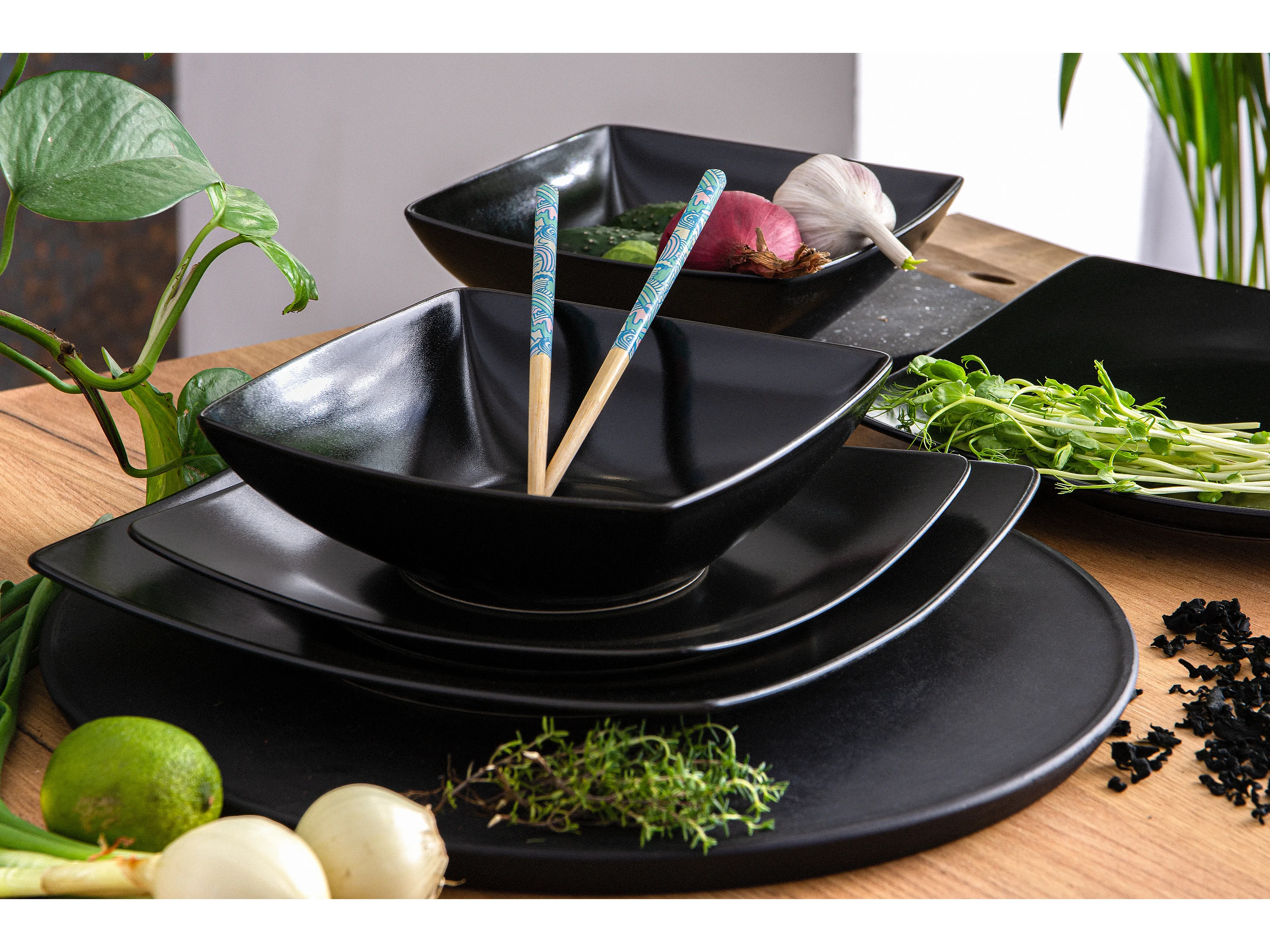 Tafelservice für 6 Personen (18el) Mikrowellengeeignet - Keramik - Schwarz - EPIRI