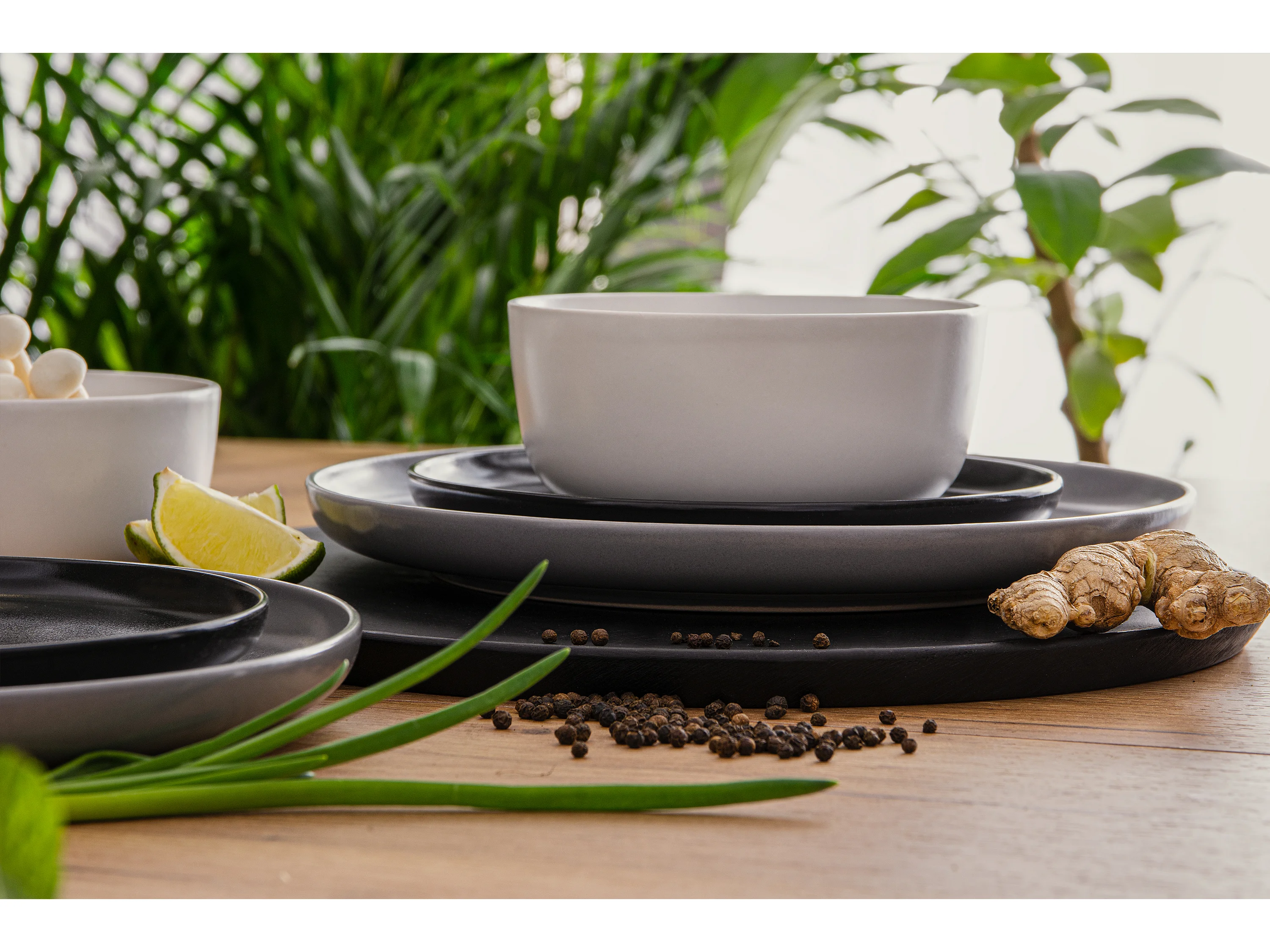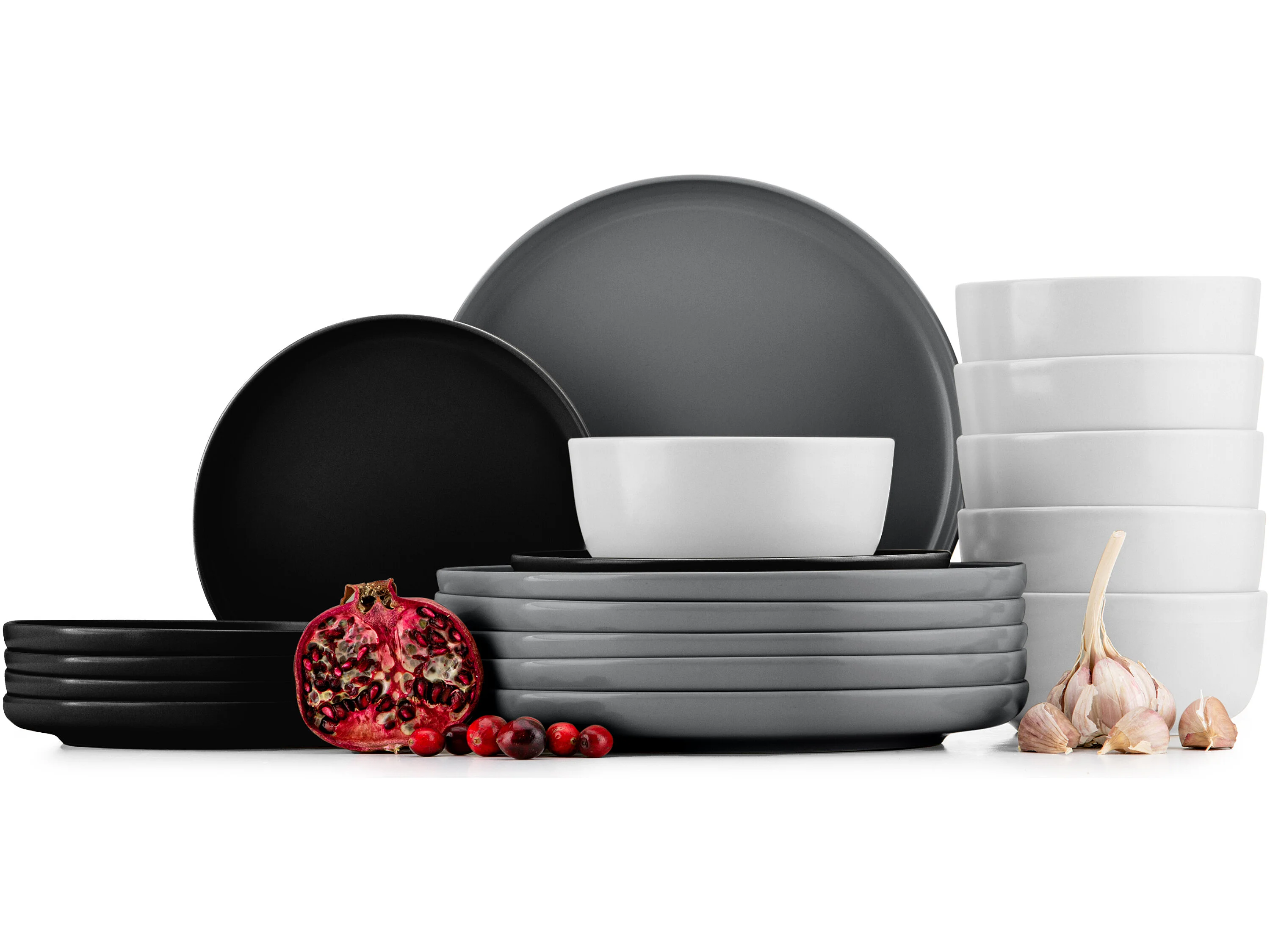 Tafelservice und Schüssel 18-tlg - Weiß, Schwarz, Grau - VICTO