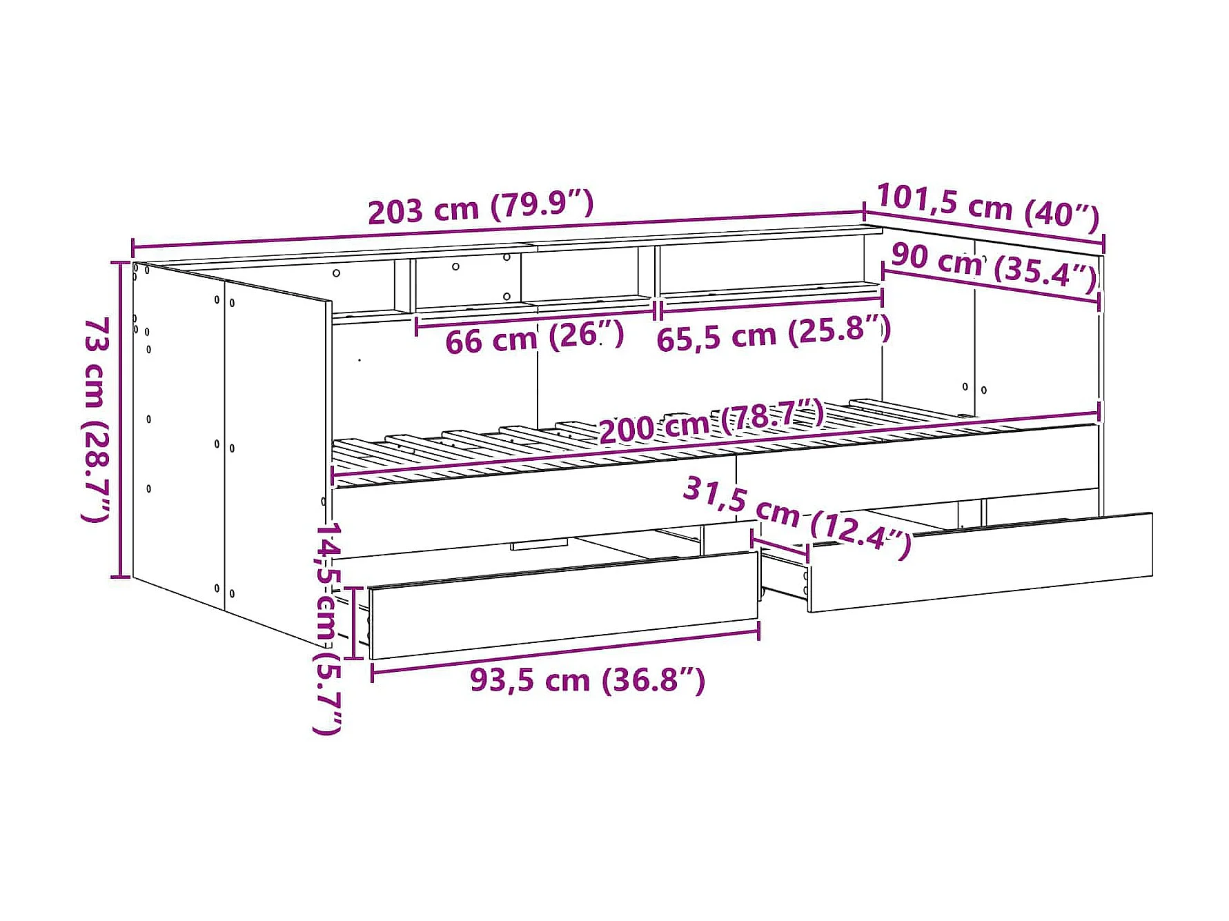 Tagesbett mit Schubladen Grau 90 x 200 cm Holzwerkstoff