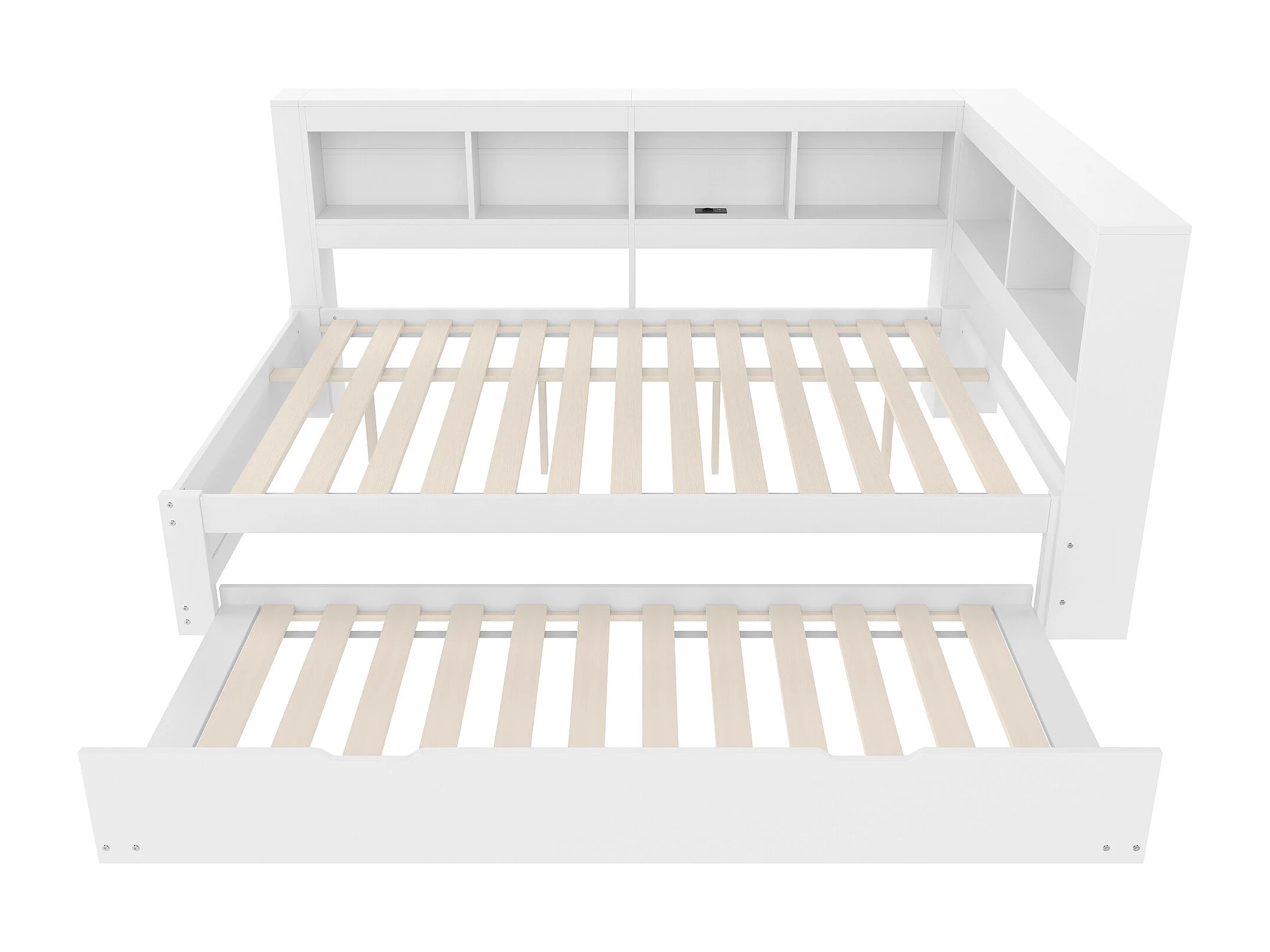 Tagesbett 140x200 cm – Kinderbett mit Ausziehbett und Lattenrost – Weiß – ohne Matratze