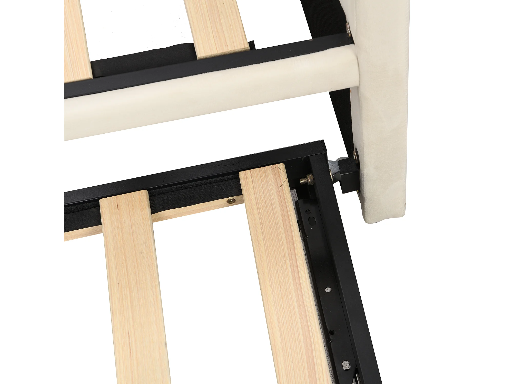 Tagesbett 90/180x200 cm – Ausziehbett und Lattenrost – Samt – Beige – ohne Matratze