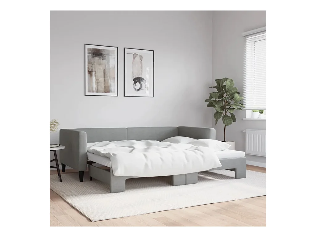 Tagesbett Ausziehbar,Ausziehbett Hellgrau 90x200 cm Stoff -gkd72514