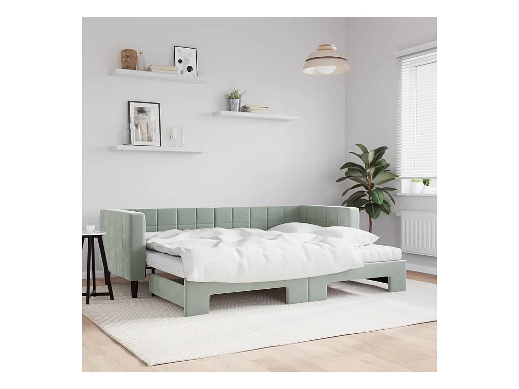 Tagesbett Ausziehbar,Ausziehbett mit Matratzen Hellgrau 80x200 cm Samt -gkd44735