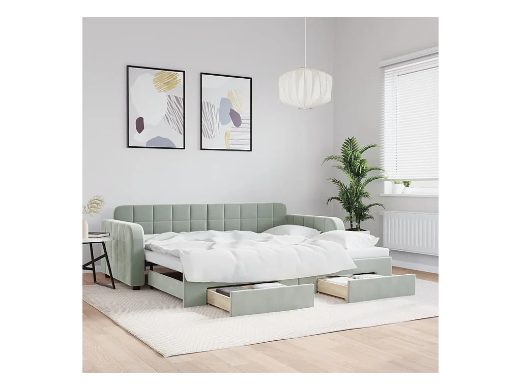 Tagesbett Ausziehbar,Ausziehbett mit Schubladen Hellgrau 90x190 cm Samt -gkd59996