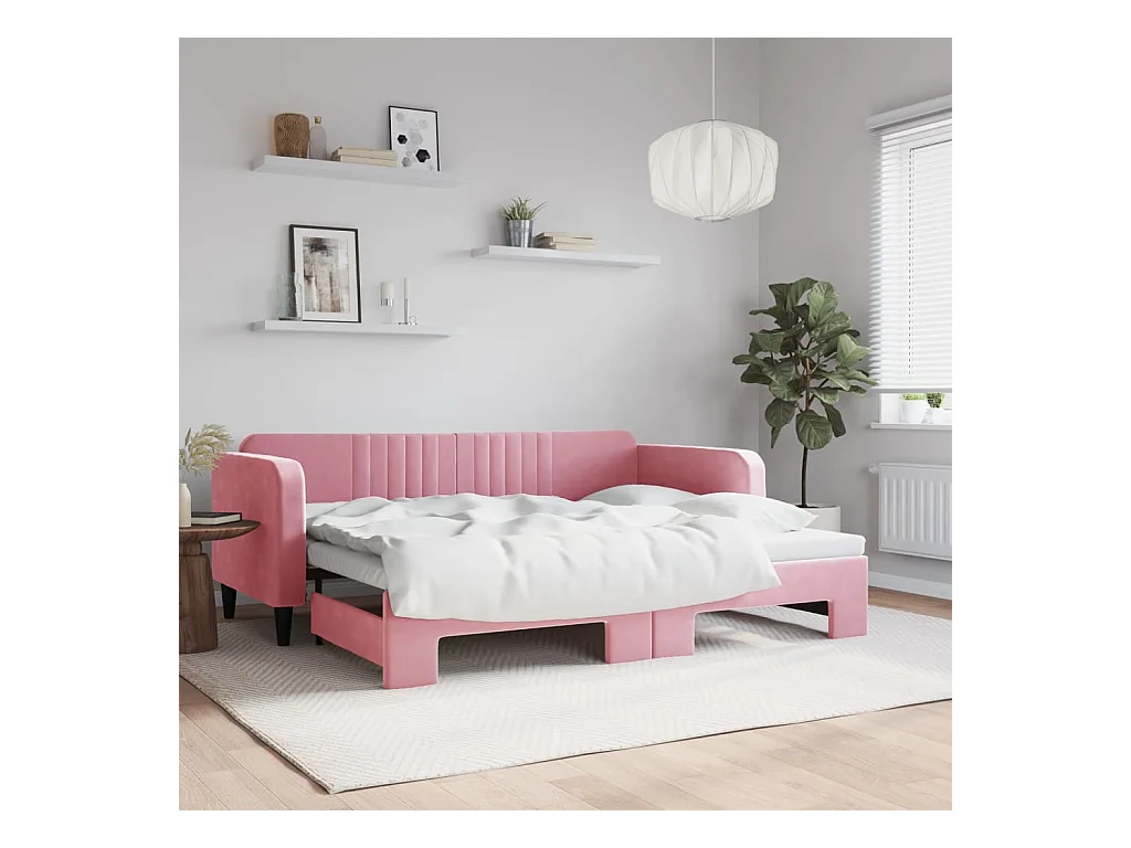 Tagesbett Ausziehbar,Ausziehbett Rosa 90x200 cm Samt -gkd83512