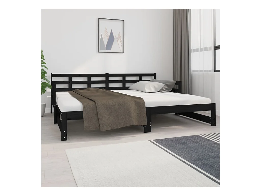 Tagesbett Ausziehbar,Ausziehbett Schwarz Massivholz Kiefer 2x(90x200) cm -gkd83023